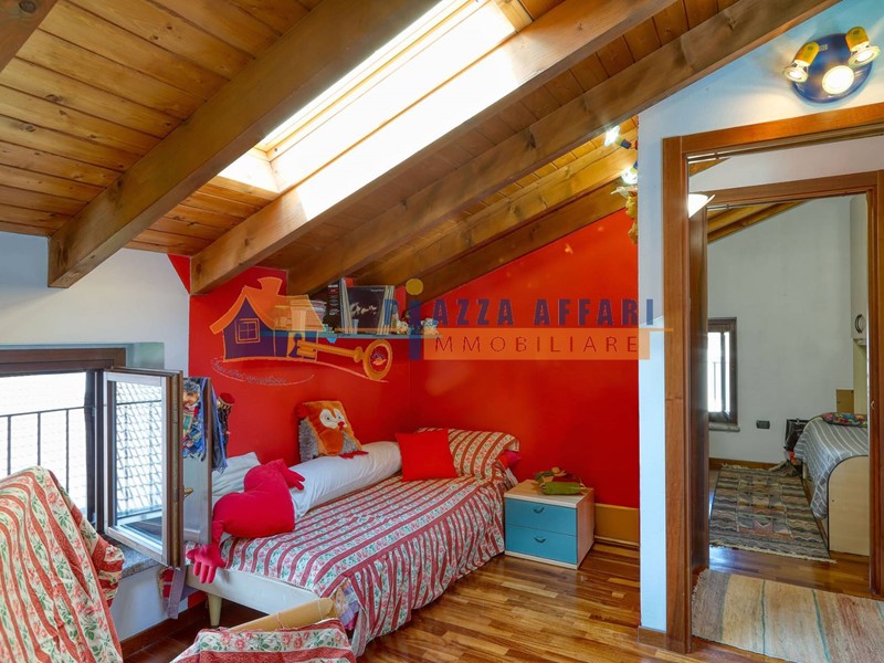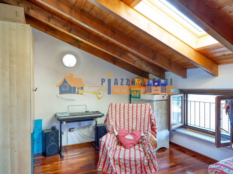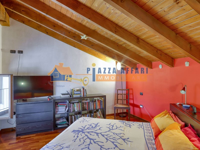 Mansarda abitabile: il calore delle travi in legno a vista e la luminosità delle numerose finestre rendono questo ambiente perfetto per la zona notte principale. Qui trovi tre camere da letto, unarea studio e un bagno, per gestire al meglio esigenze lavorative o di studio senza rinunciare a comfort e privacy.