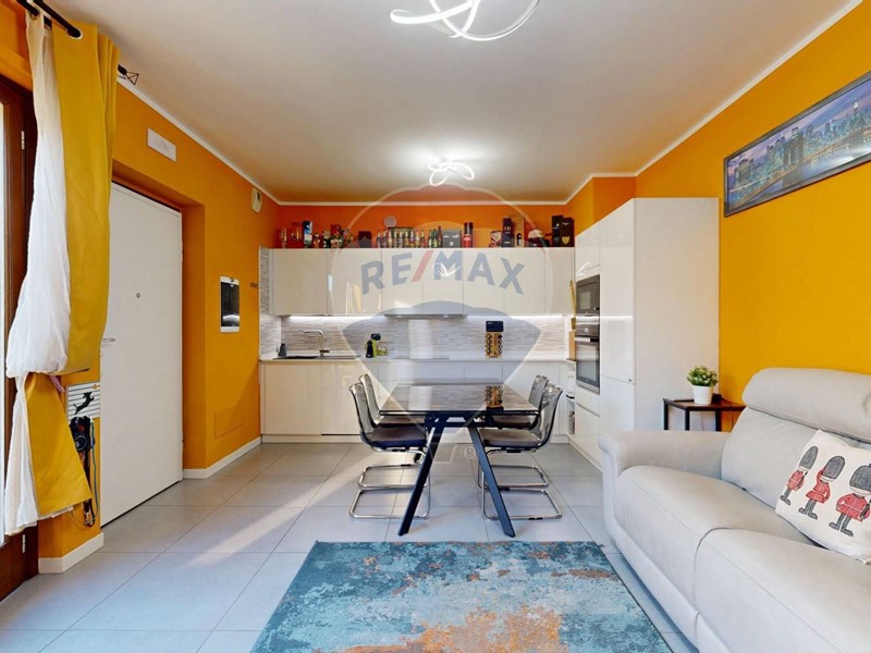 Lappartamento si apre su una zona giorno luminosa e accogliente, con angolo cottura perfettamente organizzato per la vita quotidiana.