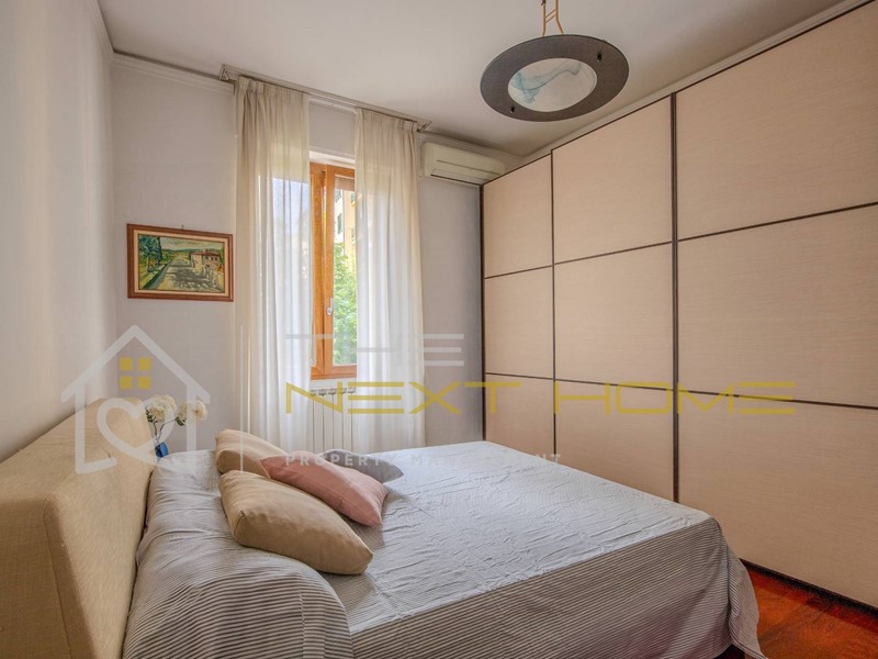 Entrando dal portoncino ci accoglie un ELEGANTE INGRESSO che da accesso a tutte le stanze della casa. Dalla CUCINA ABITABILE si ha accesso diretto al balcone che affaccia su un tranquillo cortile interno ed il SOGGIORNO è LUMINOSO e con un gradevole affaccio sui giardini di fronte al palazzo. La zona notte è composta da DUE CAMERE MATRIMONIALI oltre al BAGNO con ANTIBAGNO ad uso lavanderia ed infine troviamo anche un COMODO RIPOSTIGLIO.