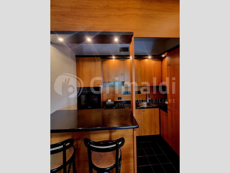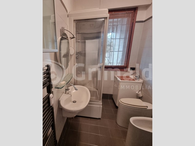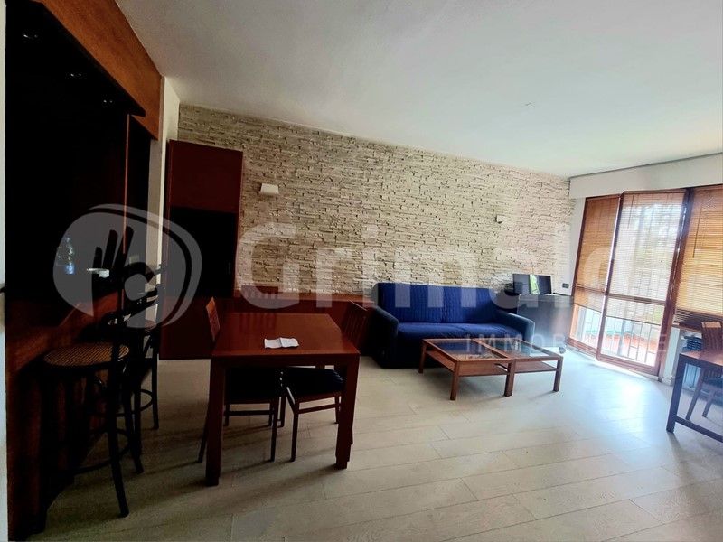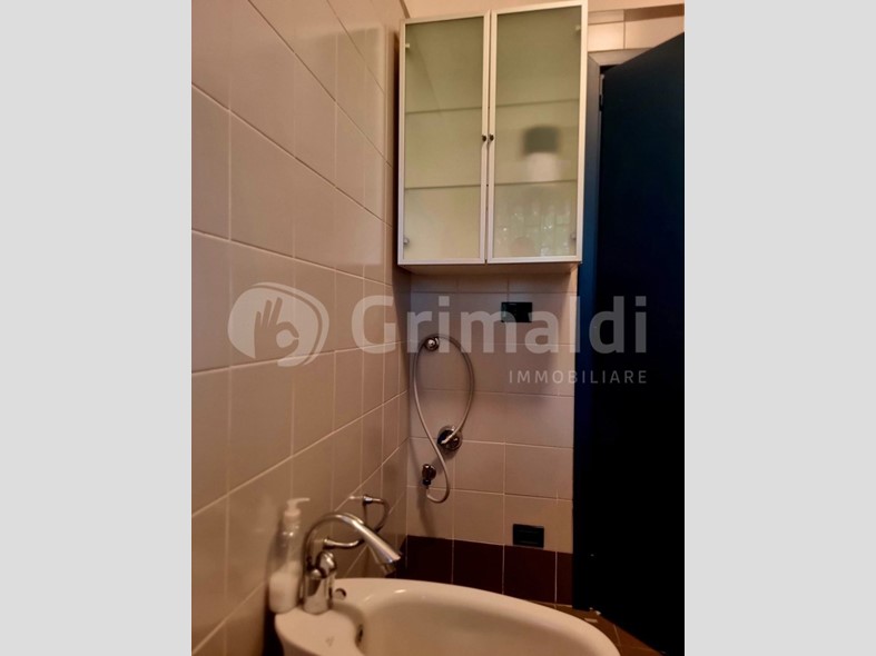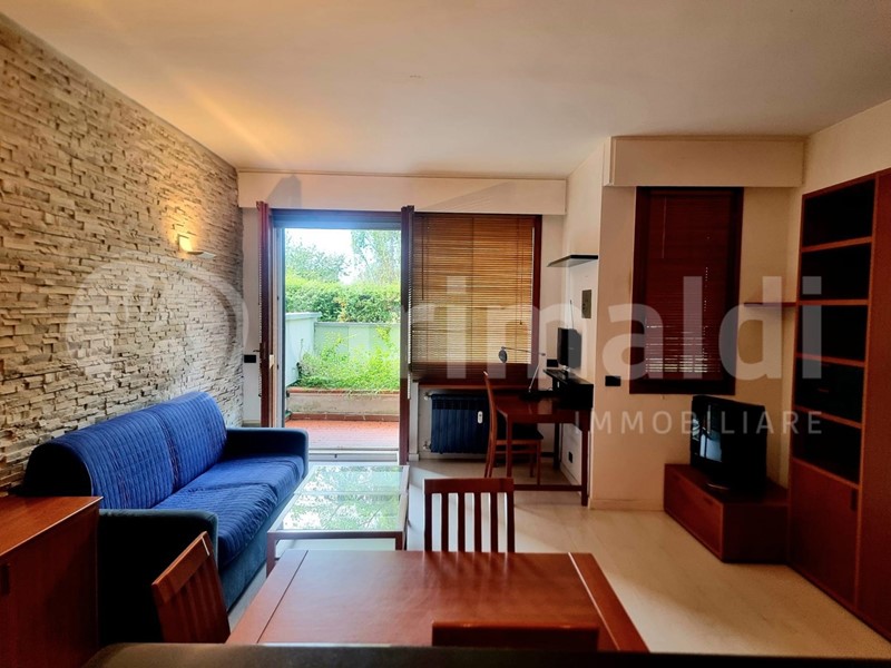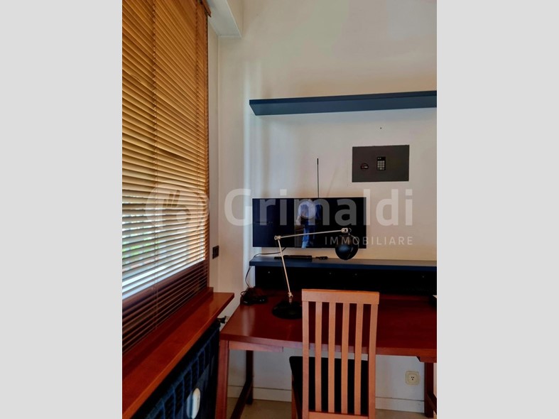 L'ampio monolocale è composto da ingresso con porta blindata, ampia zona giorno con portafinestra sul terrazzo, due finestre, cucina a vista arredata con pavimento in ceramica. Oltre la porta una zona notte. Il bagno, con finestra, è rivestito in ceramica e completo di doccia sauna Teuco e mobile lavatoio. Il terrazzo, parzialmente coperto, ha due grandi tende da sole manuali ed è stato costruito in origine e mantenuto con la grande fioriera piantumata. Attacco idrico esterno, pavimentazione in cotto da sistemare. Cancelletti in acciaio, tapparelle in ferro semiblindate elettriche, zanzariere ad ogni finestra con serramenti in legno con doppi vetri. Una cassaforte a muro interna Cisa a combinazione. Impianti condominiali per videocitofono e per satellitare tv già predisposti. Cassaforte a muro 5 cifre Cisa. N. 2 prese impianto telefono fisso. Comoda possibilità di installazione impianto aria condizionata Riscaldamento centralizzato a gas con singole valvole termostatiche. Contatore acqua sotto il lavello.