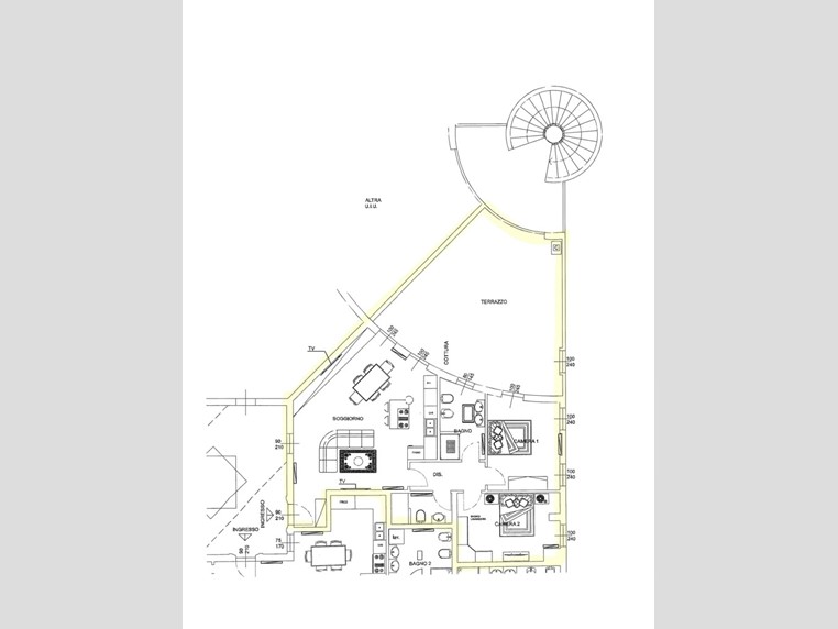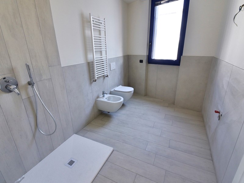 La soluzione è composta da: ingresso, soggiorno con angolo cottura a vista collegata al terrazzo, doppio bagno, camera matrimoniale e camera singola.