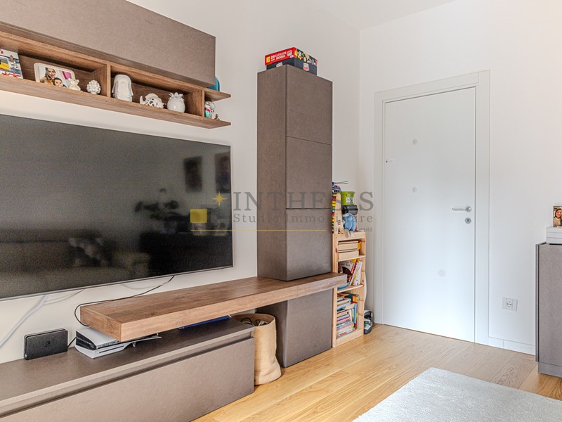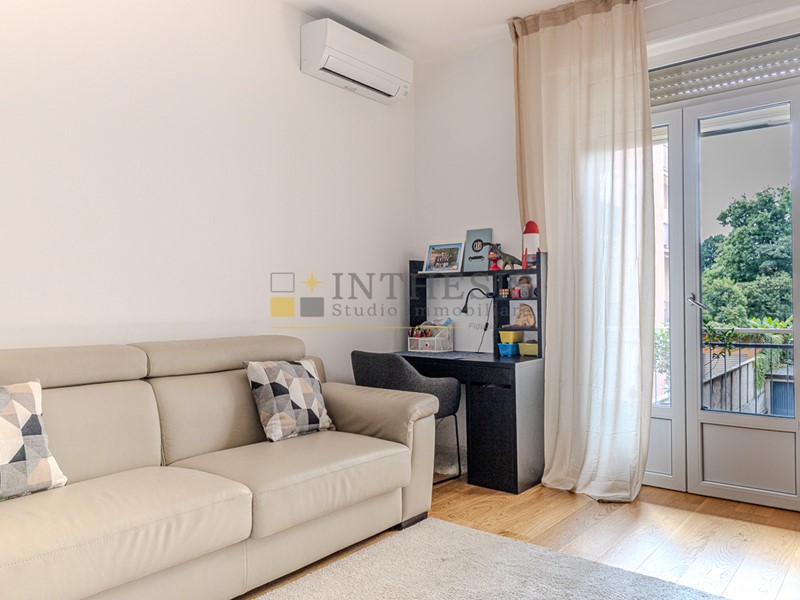 Le finiture interne sono eleganti e moderne: parquet in rovere chiaro in tutta la casa, serramenti rinnovati, riscaldamento centralizzato con termovalvole e impianto di climatizzazione con pompa di calore caldo/freddo.