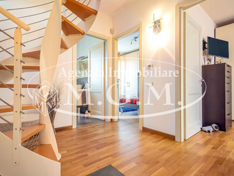 Salendo le scale a vista, la zona notte si rivela accogliente e silenziosa, dal disimpegno si accede alla camera padronale ampia e impreziosita da un loggiato dove poter rilassarsi, ad una camera media e un bagno che completa il piano con sobria raffinatezza. Un’elegante scala elicoidale conduce al sottotetto, un ambiente versatile e raccolto, perfetto per chi desidera uno studio privato o una cameretta sospesa tra intimità e luce.