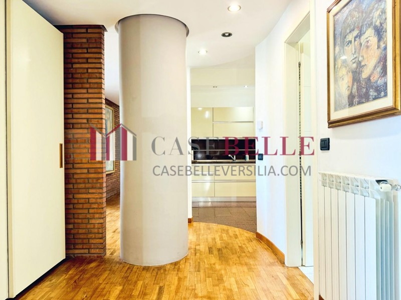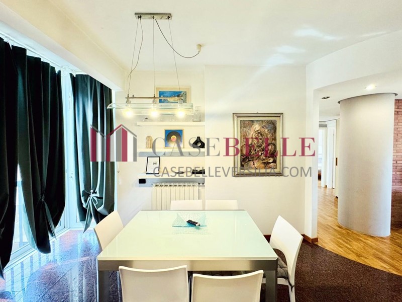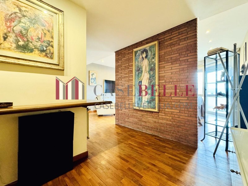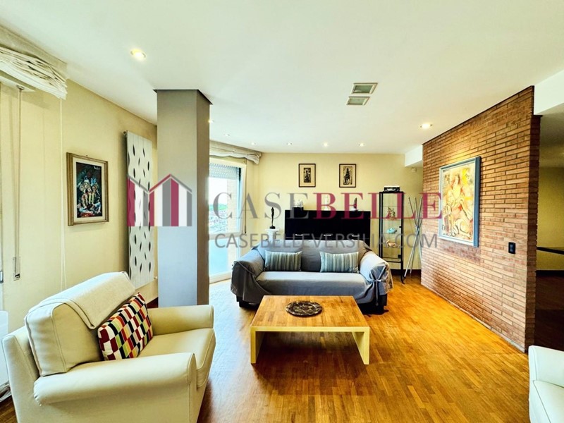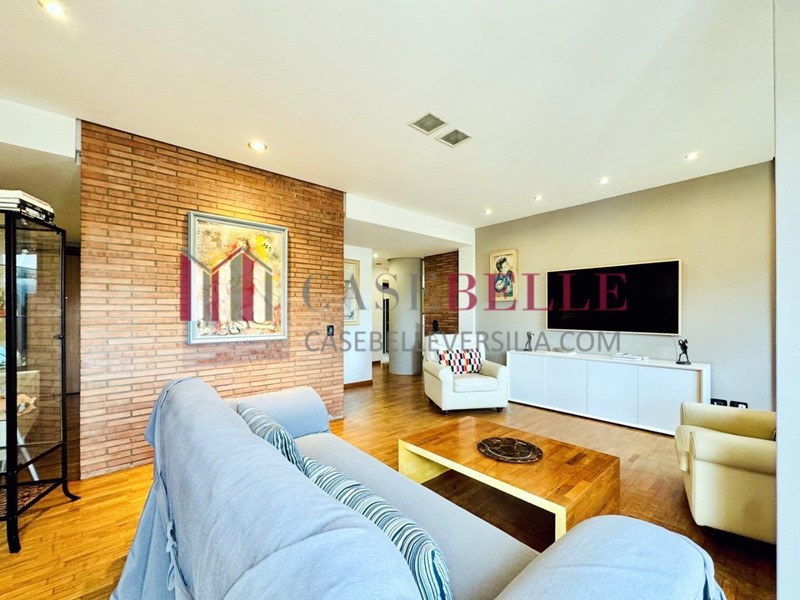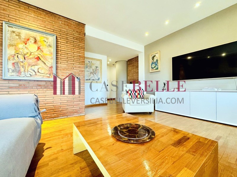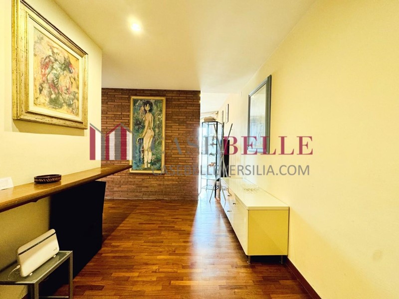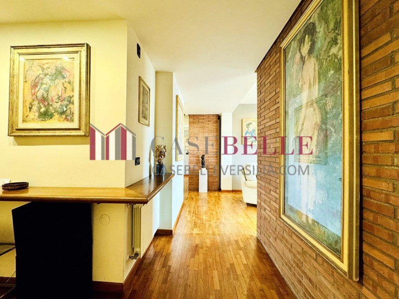 L'immobile si presenta luminoso e ben distribuito: un ampio ingresso introduce alla zona giorno caratterizzata da un grande soggiorno con parquet, dettagli in mattoni a vista e ampie finestre che conferiscono calore ed eleganza all'ambiente. La cucina, separata e abitabile, è moderna e completamente attrezzata, con spazio sufficiente per un comodo tavolo da pranzo.
