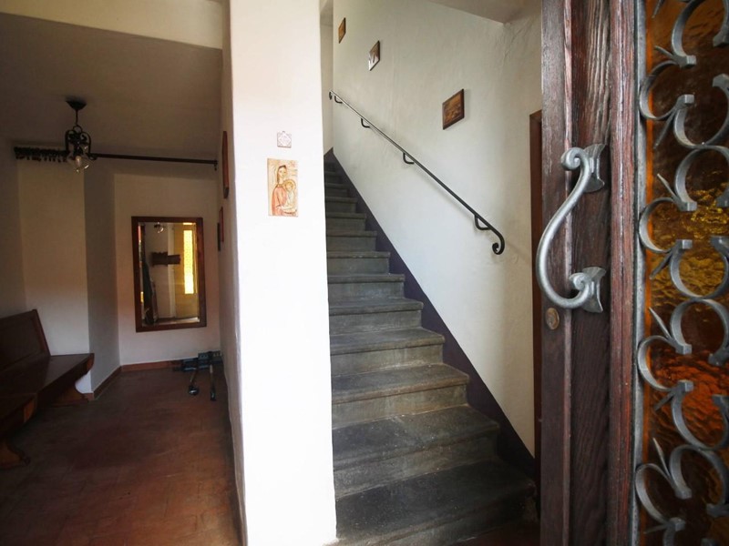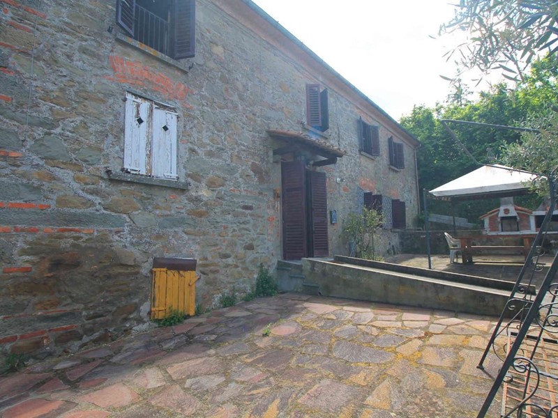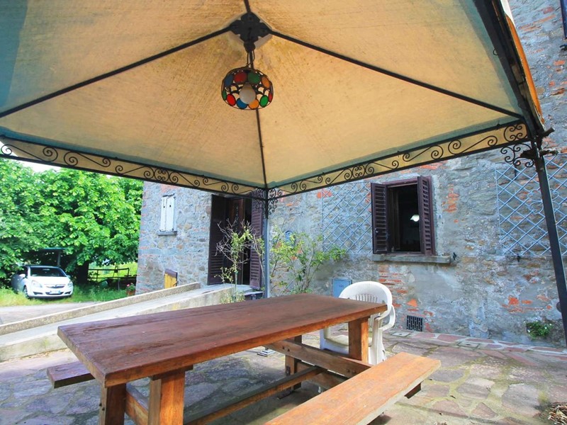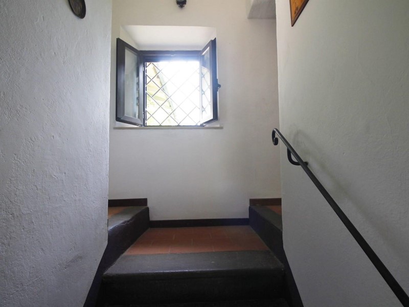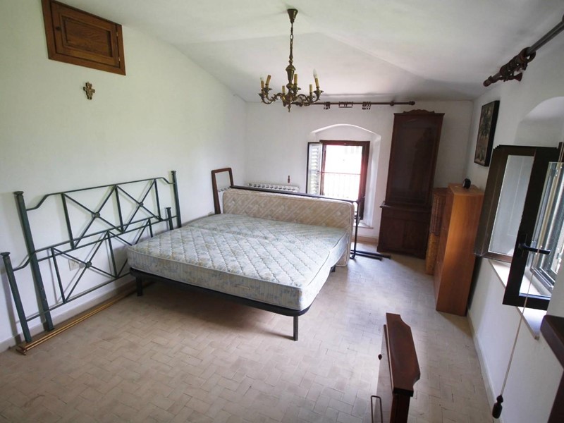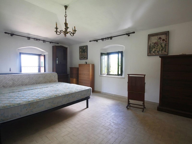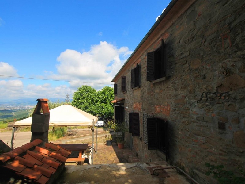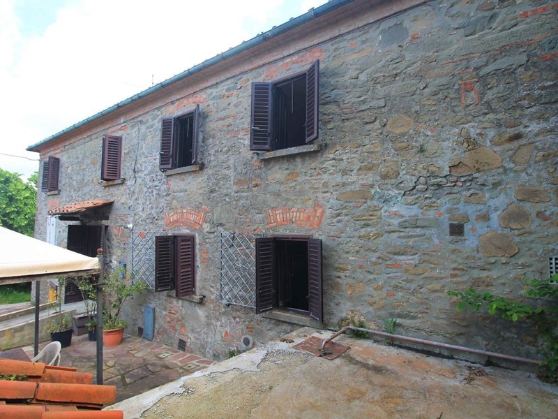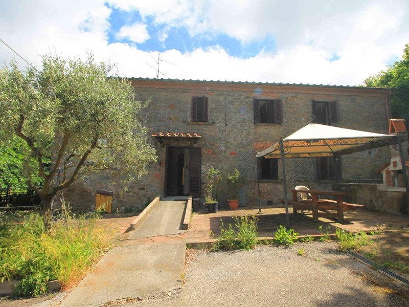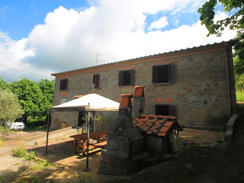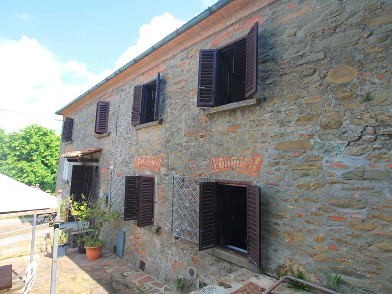 LARCIANO COLLINARE, in bella zona verde e panoramica, in caratteristico borghetto toscano, porzione angolare di CASALE in pietra con accessori, giardino e circa 10 ha di terreno.