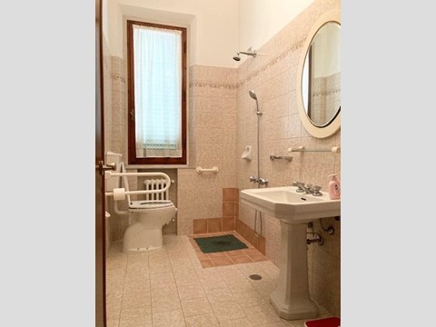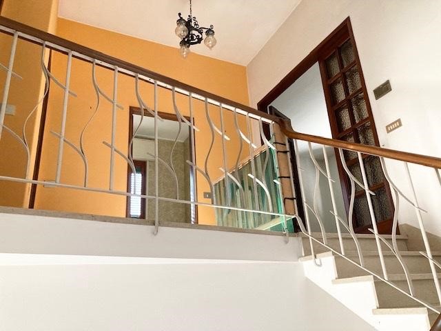 L'immobile è composto da: piano terra, ampio disimpegno di entrata, una cucina abitabile, una sala da pranzo, un soggiorno, uno studio oltre a servizio finestrato con doccia; dal disimpegno scala padronale che ci porta la primo piano dove troviamo una camera matrimoniale, una camera singola, un grande soggiorno con cucinotto finestrato ed uscita su balcone oltre bagno finestrato con vasca .