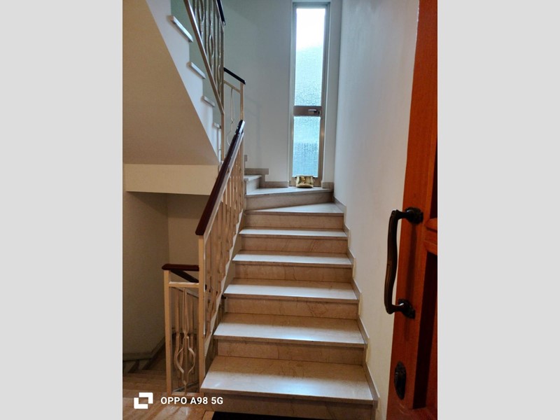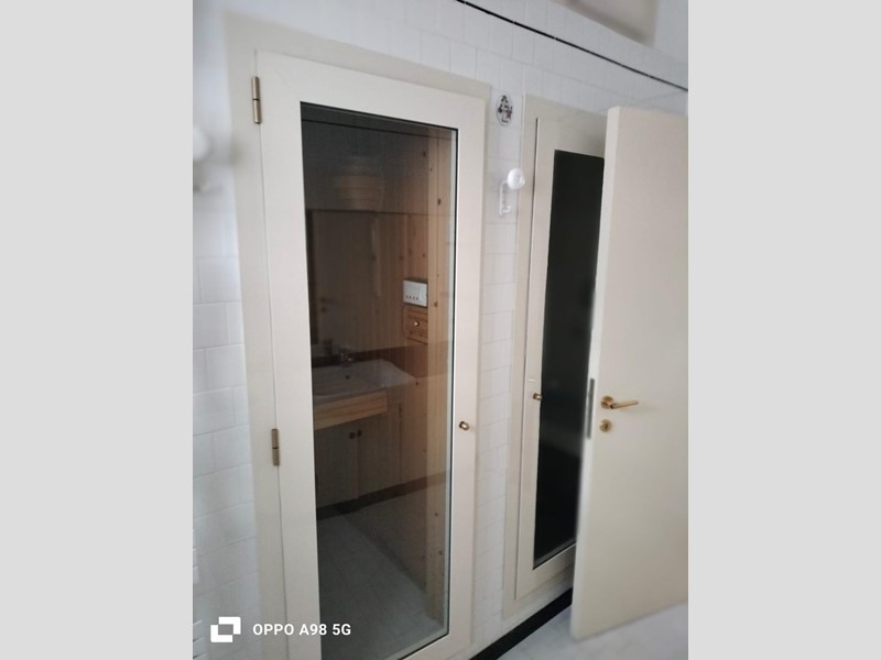 Cosi composto ampia sala con un piccolo terrazzo , cucinotto, una camera matrimoniale con bagno, una camera singola con balcone , ampio bagno con sauna, cantina, lavanderia ampia, doppia autorimessa, giardino privato.