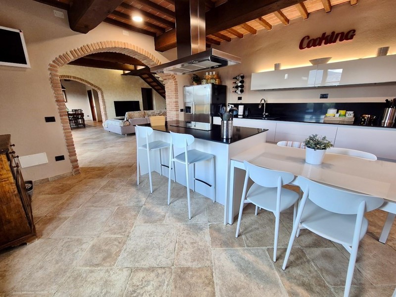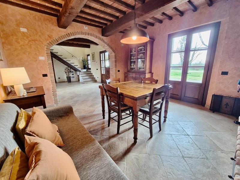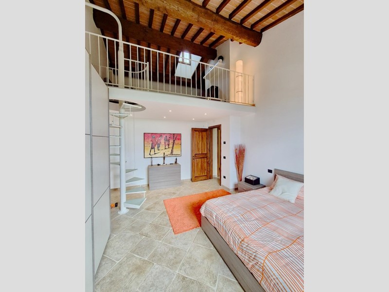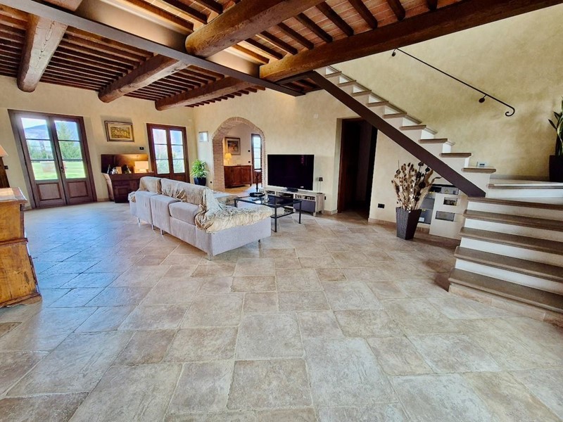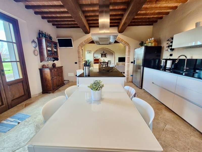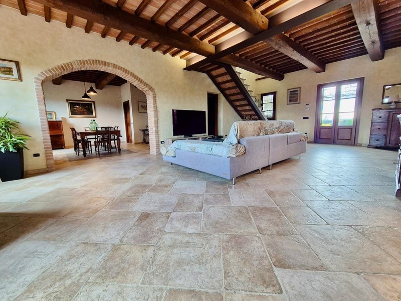 Cascina: in aperta compagna, circondato dal verde, a pochi minuti di auto dai principali servizi, bellissimo rustico/casale completamente e finemente ristrutturato di complessivi 400 mq circa su due livelli, circondato sui 4 lati da circa 10.000 mq di giardino. L'immobile si presenta in condizioni impeccabili, la classe energetica è "A 4", tecnologicamente all'avanguardia, dotato di impianto fotovoltaico da circa 11 Kw con sistema di accumulo da circa 30Kw, impianto di riscaldamento e raffrescamento a pavimento, impianto domotico, impianto di aspirapolvere centralizzato, sistema di produzione acqua calda/fredda per il riscaldamento/raffrescamento azionato da pompa di calore, sistema di stoccaggio acqua calda sanitaria con serbatoio dedicato, impianto di allarme di ultima generazione, impianto di irrigazione tramite acqua di pozzo privato, impianto anti-zanzare. L'immobile internamente è così suddiviso, al piano terra: ampio living - open space soggiorno, cucina, sala da pranzo e zona relax con camino, bagno; al piano primo, con accesso tramite scala interna: disimpegno notte, una camera matrimoniale con soppalco e bagno privato con accesso a due locali sottotetto ad uso ripostiglio, una camera matrimoniale con bagno privato e una suite padronale composta da camera con soppalco, cabina armadi e bagno. Sempre al piano terra, con ingresso sia dall'interno che dall'esterno, è presente un piccolo appartamento bi-locale multiuso per ospiti e/o personale di servizio. Completa la proprietà un locale tecnico posto al piano terra con accesso dall'esterno. Nel giardino è presente un laghetto con fontana a cascata e lo scavo per la piscina (da finire di completare). Rif. 4237