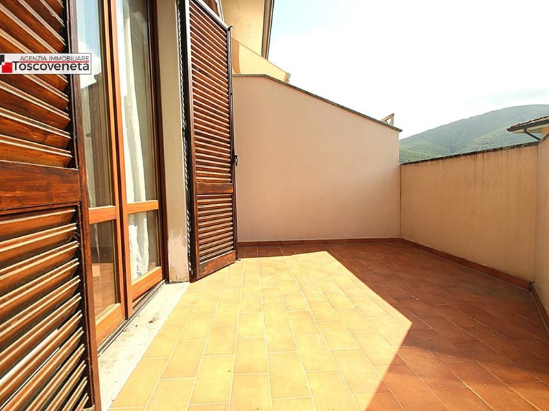 l’accesso all’abitazione avviene tramite ingresso indipendente al piano terra, dove si trova il giardino. Una comoda scala esterna conduce ad una spaziosa terrazza abitabile dalla quale si accede ad ampio e luminoso soggiorno, cucina abitabile con piccolo ripostiglio/dispensa, disimpegno, camera matrimoniale con terrazza con una bella vista sulle montagne e zone verdi, camera singola, bagno con vasca e finestra e bagno di servizio finestrato.