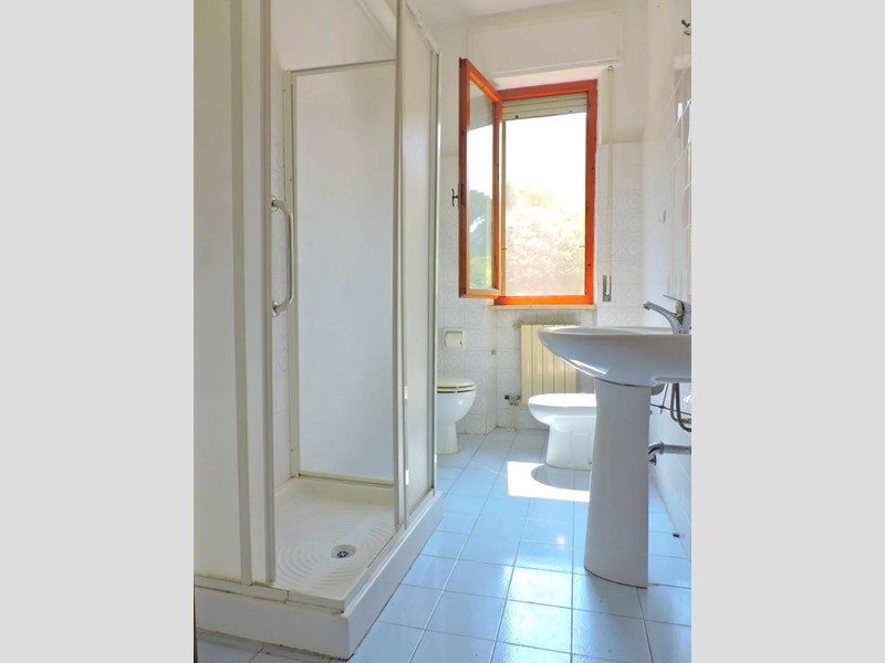In the town of San Giuliano Terme, we offer for sale a spacious four-room apartment, approximately 100 square meters, in a small condominium with a large fenced yard and an uncovered parking space. The building is in a tidy condition, with facades redone a few years ago. A roof replacement has already been approved, with the current owner/seller paying the cost of the renovation. The apartment comprises a traditional entrance hallway, a spacious living room of over 20 square meters with a covered terrace, a large eat-in kitchen with a service balcony, a storage room, a hallway leading to the sleeping area, two double bedrooms, and a bathroom with a shower and window. The apartment is available quickly and features independent heating with copper pipes, working electrical and plumbing systems, terrazzo floors (except in the living room), and wooden window frames. The property includes a 14 sq m garage located a few steps from the house and a large storage room of approximately 60 sq m, located on the ground floor of the building and immediately below the apartment. This could be connected to a basement. Energy efficiency class: G - Ref. 1675
