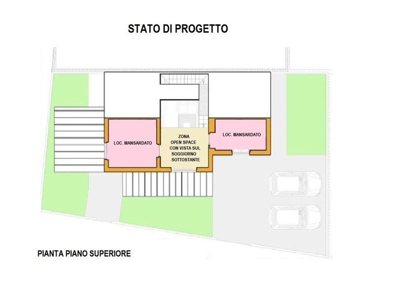 Piano mansardato: scenografico salotto open con affaccio sulla sala sottostante e due comodi vani uso gioco/camere, tutti con ottima luminosità naturale.