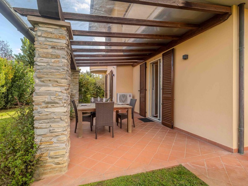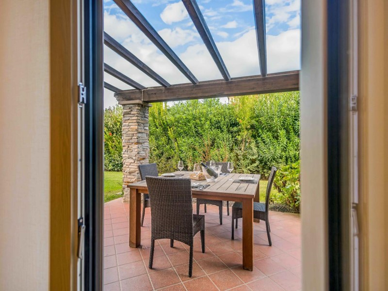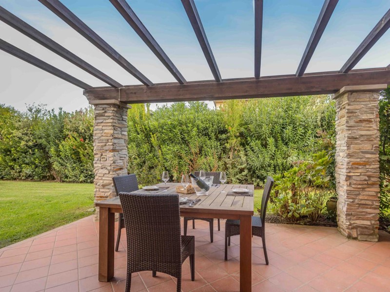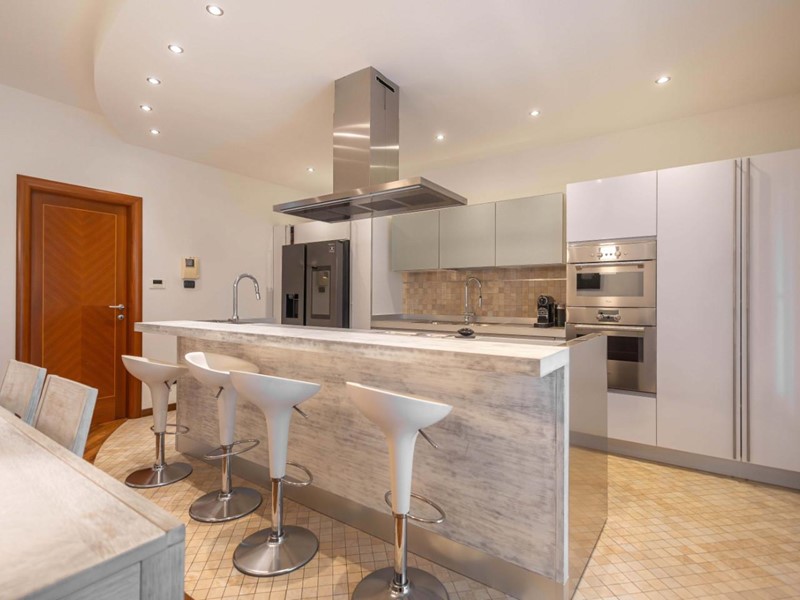 La cucina, funzionale e spaziosa, è attrezzata per ogni esigenza ed è collegata ad una zona verandata, perfetta per godere del giardino e vivere indimenticabili serate all’aria aperta.