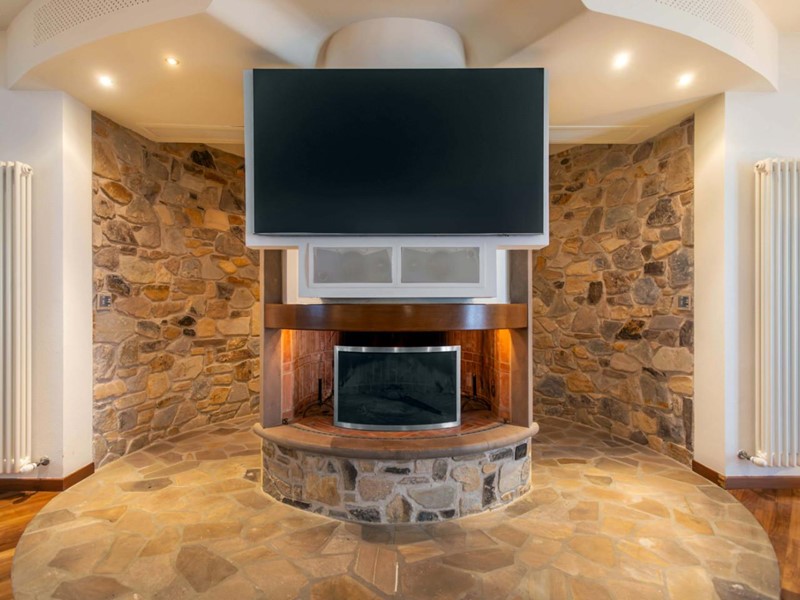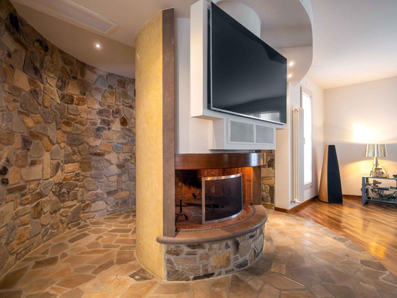 All’ingresso ci accoglie un luminoso salone triplo dotato di camino di design che crea un’atmosfera calda e accogliente, ideale per serate in famiglia o momenti di relax.