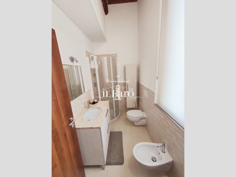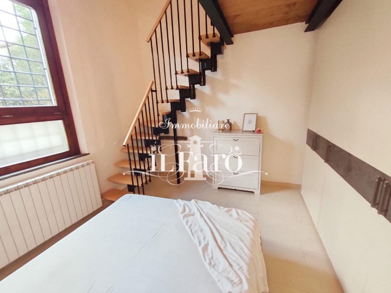L'abitazione è così composta: Entrando ci accoglie una bella zona giorno molto luminosa aperta sulla cucina abitabile, tramite un disimpegno raggiungiamo la zona notte composta da una camera da letto matrimoniale con soppalco, una cameretta e un bel bagno finestrato con doccia.