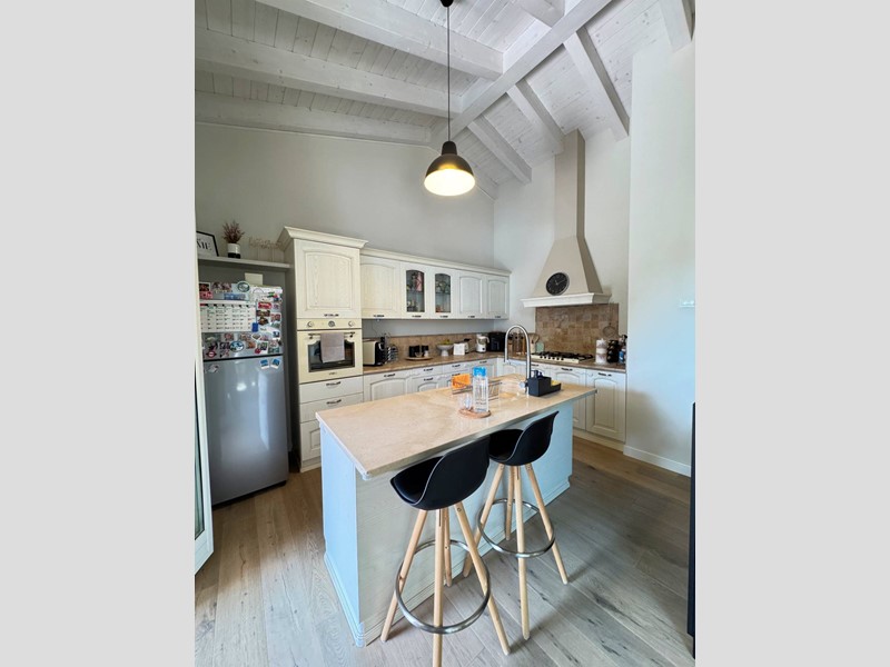 Piano Terra: entrando in questa favolosa bifamiliare troviamo un soggiorno di ampie metrature e con grande luminosità, con termo camino ad aria per comfort immediato; cucina su misura con isola centrale e porta finestra che si aprono sul loggiato, ideale da utilizzare come zona pranzo allaperto o salotto estivo; 2 camere da letto al piano e splendido bagno rifinito con vasca idromassaggio e doccia oltre a ripostiglio/lavanderia , da comode scale arriviamo al