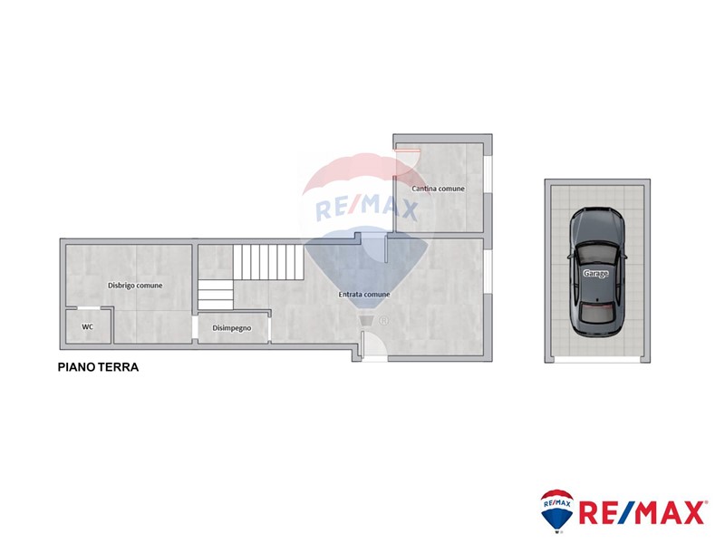 Completano la proprietà, a piano terra, due cantine condivise di 6 e 5 mq rispettivamente, ed un garage di 18 mq.