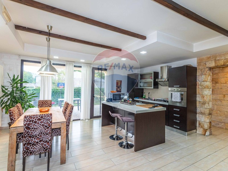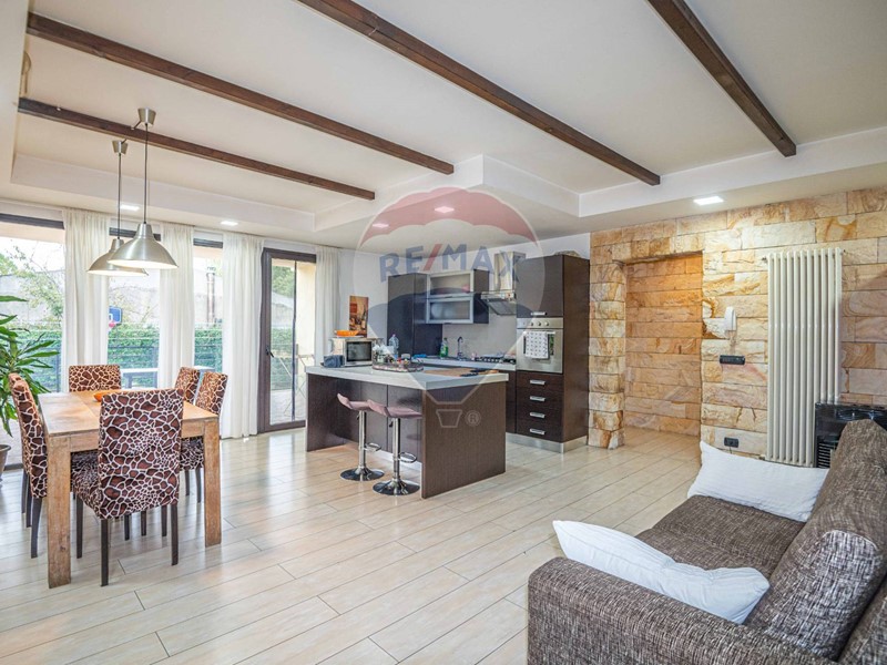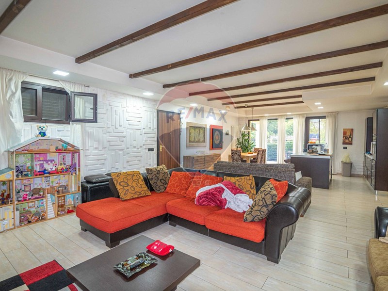 Dalla zona giorno si accede al balcone, ideale per godere di una piacevole vista panoramica e per rilassarsi all'aperto.La villa è circondata da un ampio giardino privato, perfetto per trascorrere momenti di relax all'aria aperta, organizzare pranzi e cene all'aperto o far giocare i bambini in sicurezza.