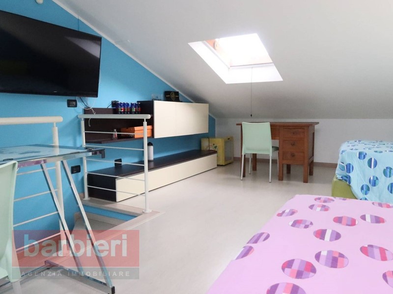 L'immobile, disposto su più livelli, è composto da un ampio soggiorno angolo cottura e bagno al piano terreno; una camera da letto matrimoniale, una camera da letto singola, bagno finestrato e balcone al primo piano; mansarda al secondo piano; garage, bagno e ampia taverna al piano seminterrato direttamente collegati con l'abitazione da scala interna.