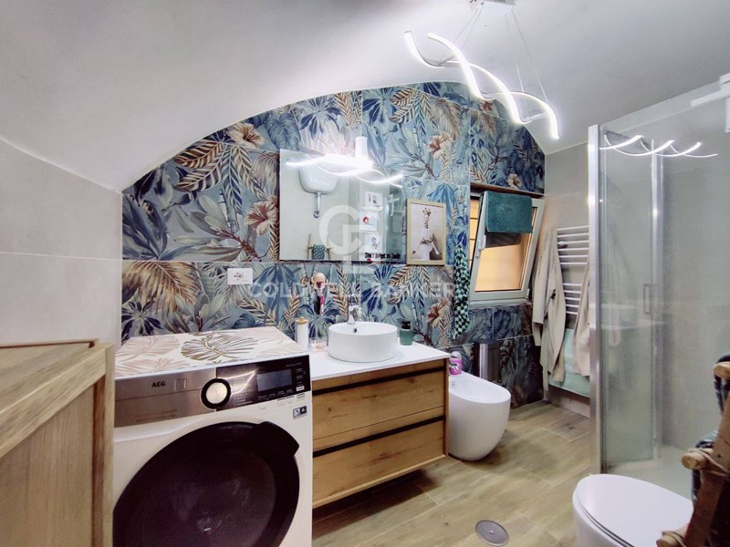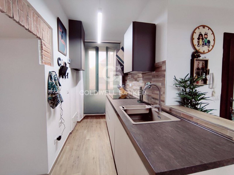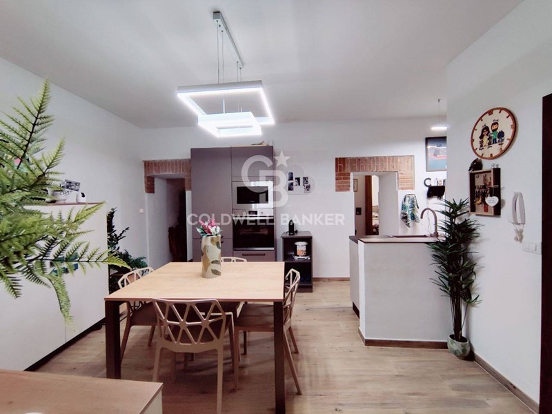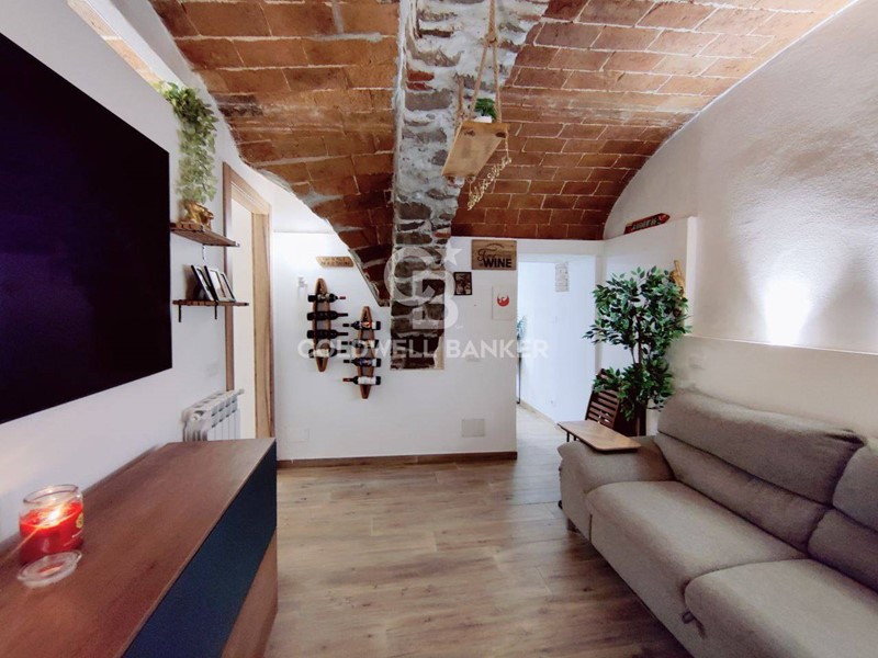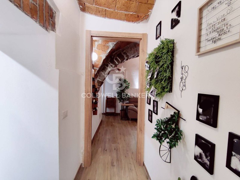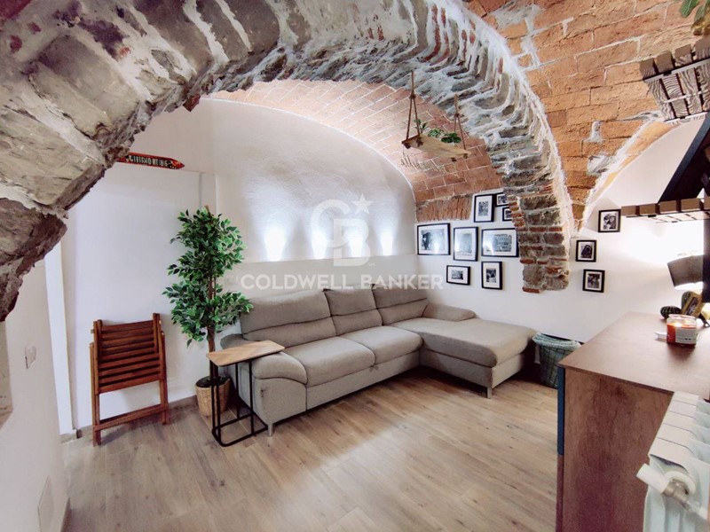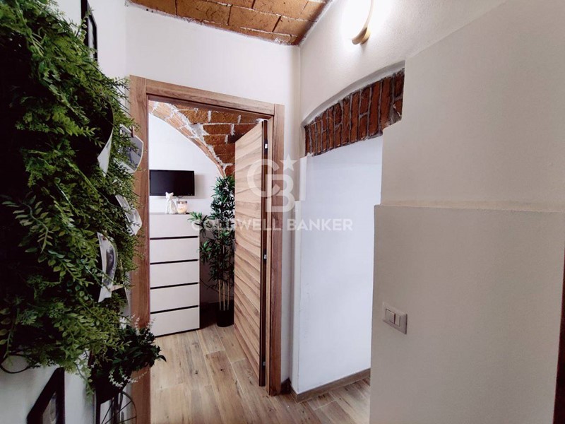 L'appartamento è stato recentemente oggetto di una completa ristrutturazione interna in stile moderno. Restano alcuni elementi medievali come il soffitto a volte incrociate e gli archi con pietre a vista. Gli infissi sono in alluminio e le finestre sono dotate di persiane e zanzariere.