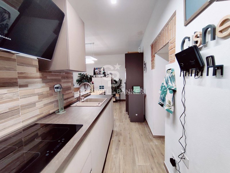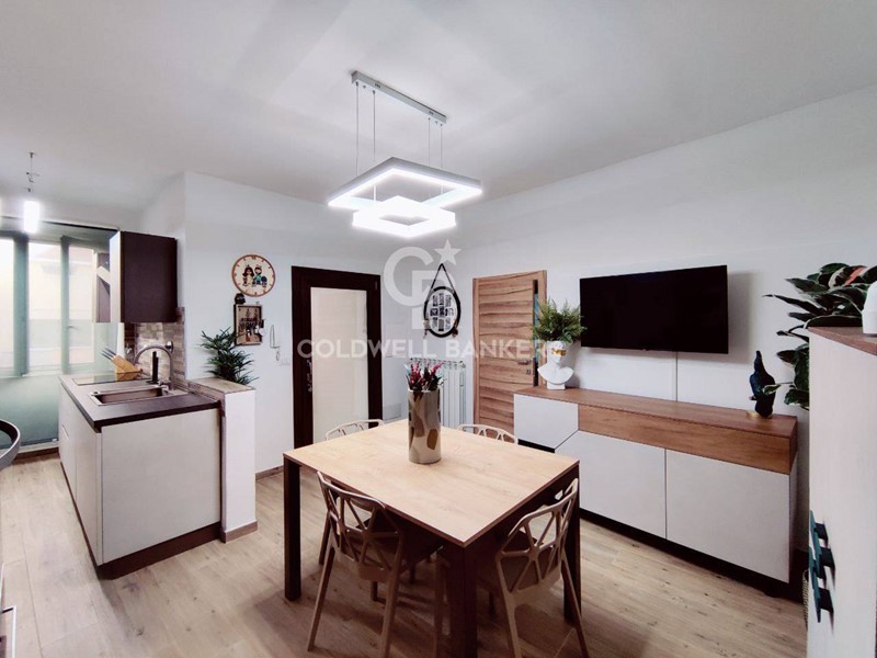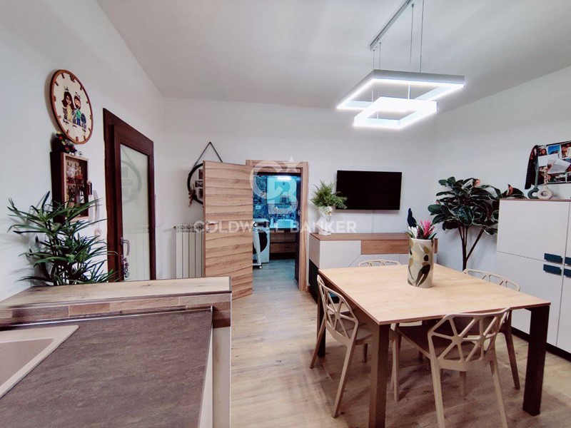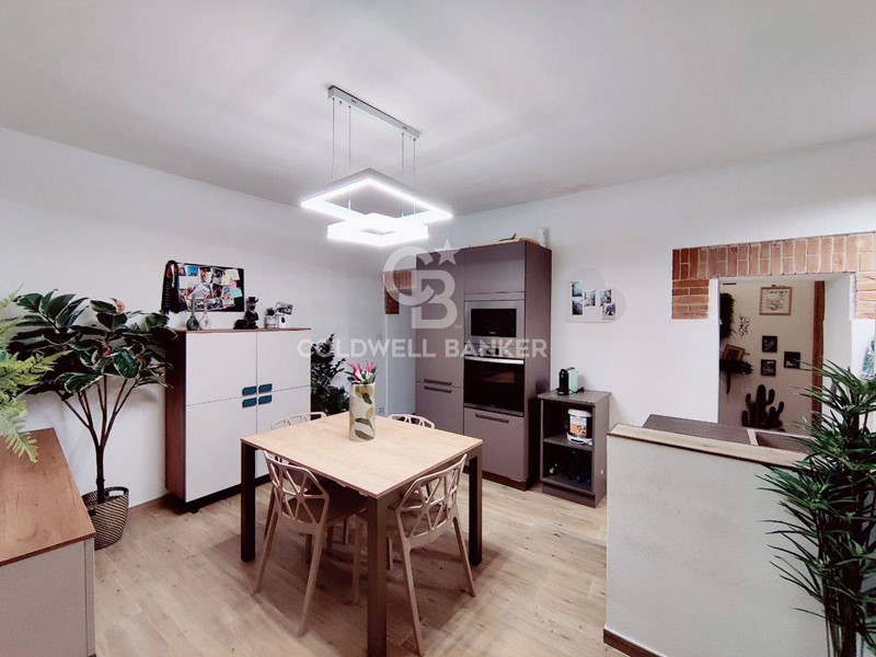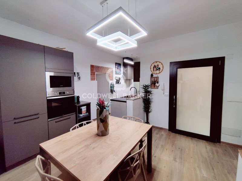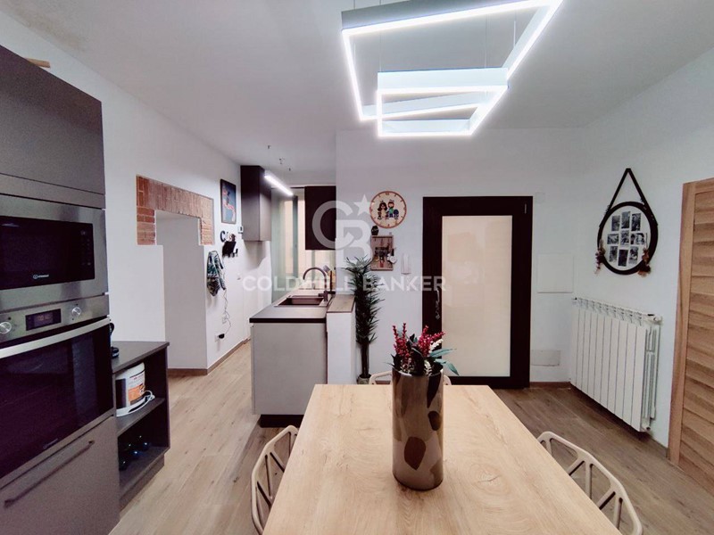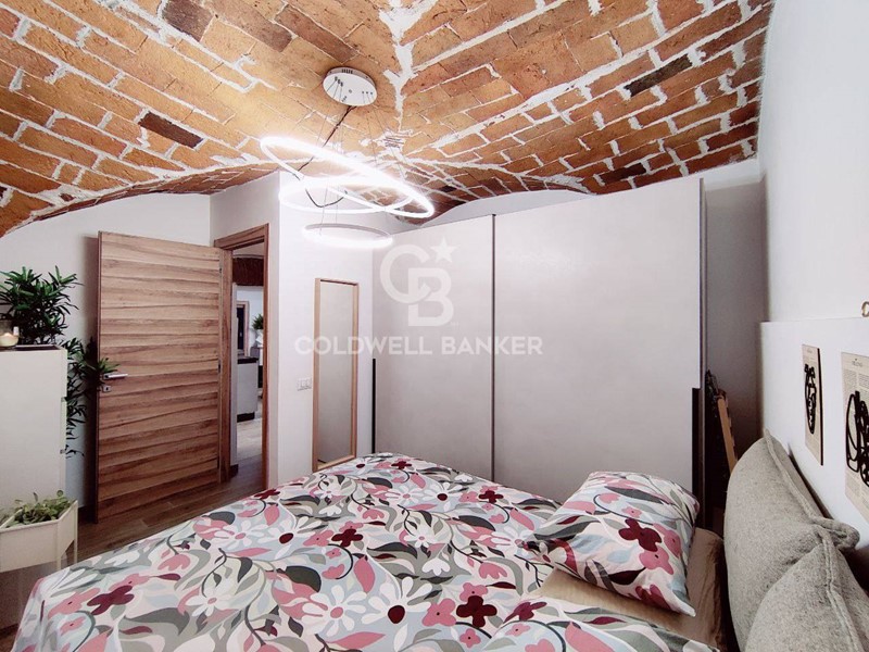 L'appartamento è stato recentemente oggetto di una completa ristrutturazione interna in stile moderno. Restano alcuni elementi medievali come il soffitto a volte incrociate e gli archi con pietre a vista. Gli infissi sono in alluminio e le finestre sono dotate di persiane e zanzariere.