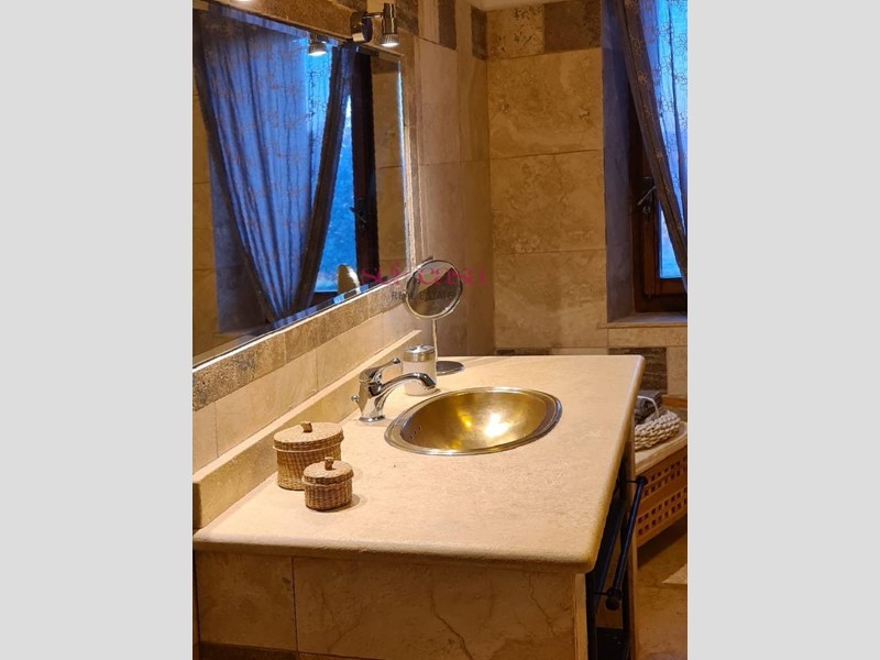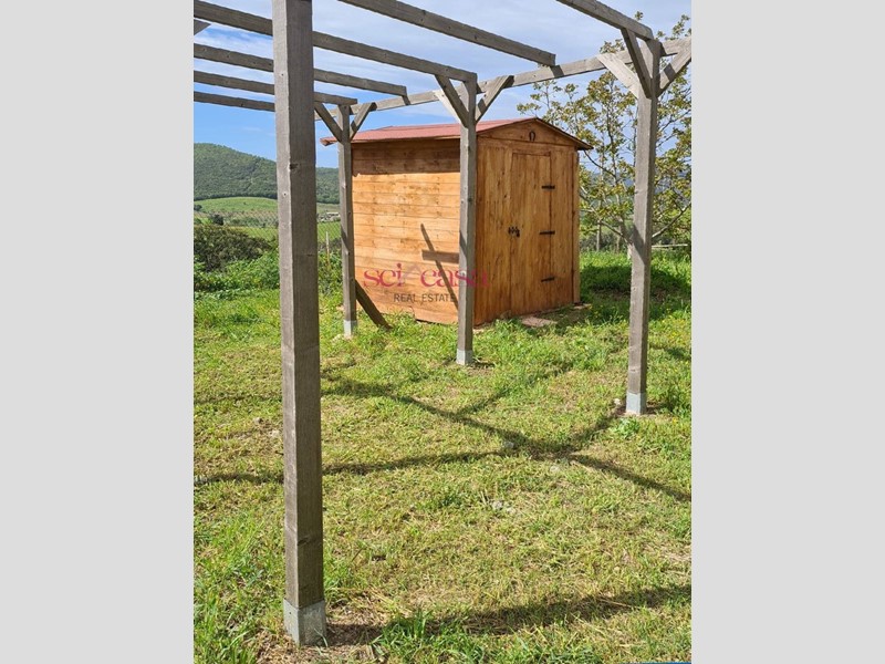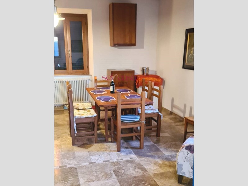 La casa si estende su una superficie totale di 170 mq ed è situata la piano primo al quale si accede attraverso una bella scala esclusiva ed una splendida terrazza di 30 mq con vista panoramica sulle colline d'intorno. L'ingresso si apre sull'ampio soggiorno con a fianco la grande cucina. Un corridoio conduce al reparto notte composto da quattro camere matrimoniali, di cui la padronale con bagno privato, ed un ulteriore bagno. Gli ambienti sono luminosi e ben distribuiti, garantendo spazio sufficiente per tutta la famiglia. La casa, con facciata in pietra a faccia vista risalente ai primi anni del '900. è stata completamente e finemente ristrutturata con materiali di pregio, pavimenti in parquet, bagni in travertino. Gli impianti elettrico ed idrico sanitario sono nuovi. L'impianto di riscaldamento è di tipo tradizionale con stufa a pellet. Fa parte della proprietà un bellissimo e curato giardino di mq 600 con piante ornamentali, olivo secolare, alberi da frutta, perfetto per rilassarsi e godere delle splendide viste panoramiche.. Nel giardino insiste un annesso agricolo ed esiste la possibilità di realizzare una piscina ed un carport in legno.