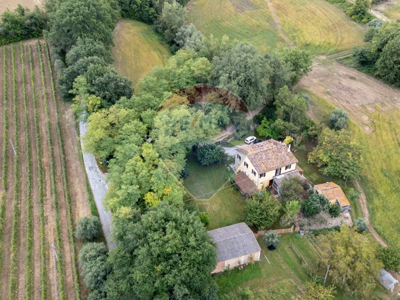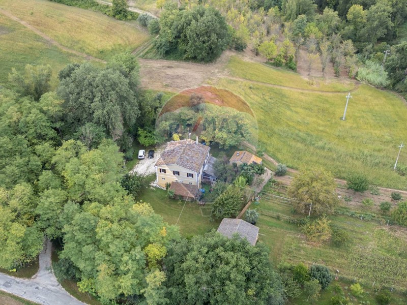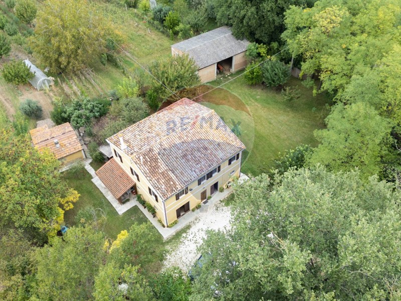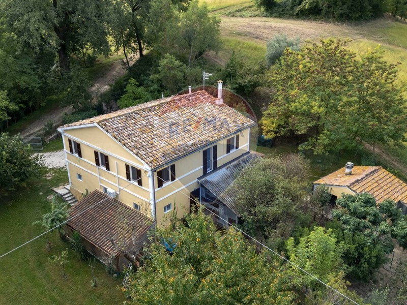 MAIOLATI SPONTINI, VIA TUFI: A POCHI MINUTI DA MOIE, CASA INDIPENDENTE CON AMPIA ZONA ABITATIVA AL PIANO PRIMO, PIANO TERRA MAGAZZINO BEN FINESTRATO, FIENILE, INCANTEVOLE CORTE ESCLUSIVA E TERRENO DI QUASI 6 ETTARI.