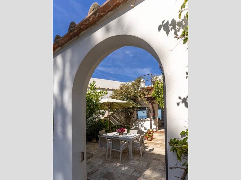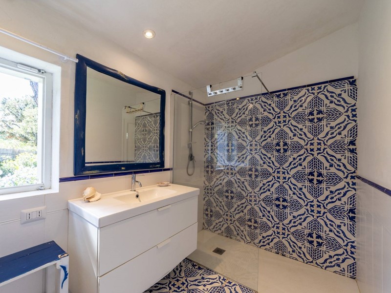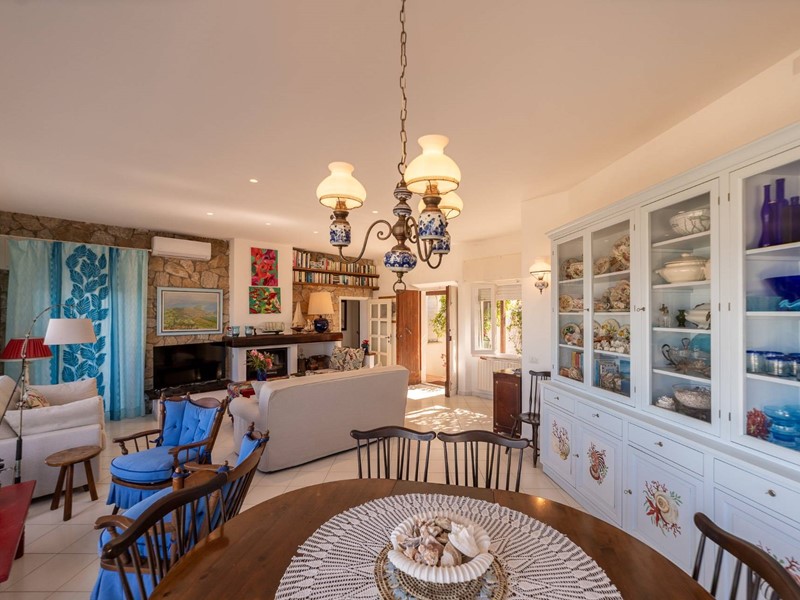 Entriamo nella proprietà e ci accoglie subito una grande zona soggiorno con vetrate sul mare, adiacente zona pranzo e cucina super accessoriata, dalla quale si accede alla zona pranzo e cucina esterna. La zona notte invece si distingue in due camere doppie con bagno in comune, e di una camera matrimoniale, bagno e camera a due letti, oltre ad una piccola stanza di servizio