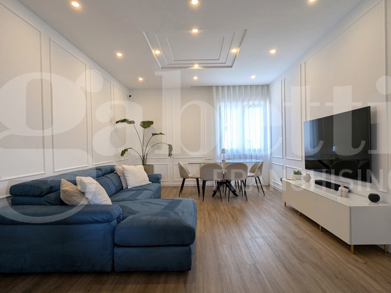Proponiamo in VENDITA, in zona MAZZONI e precisamente in Via Giulio Cesare, elegante APPARTAMENTO FINEMENTE RISTRUTTURATO dotato di un ampio TERRAZZO A LIVELLO, posto al primo piano di un piccolo condominio collocato in contesto residenziale a pochi passi da tutti i servizi utili al quotidiano.