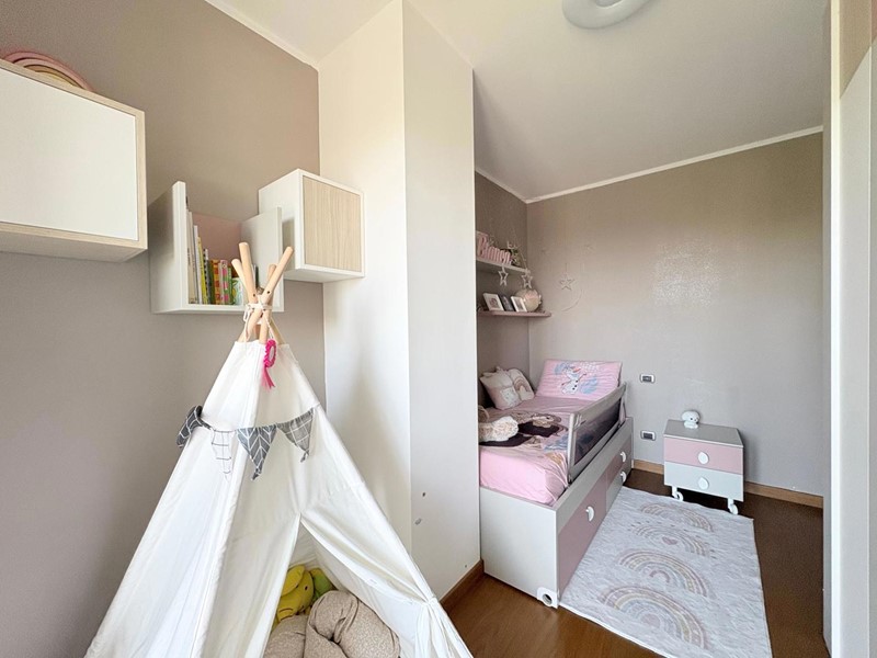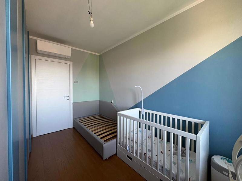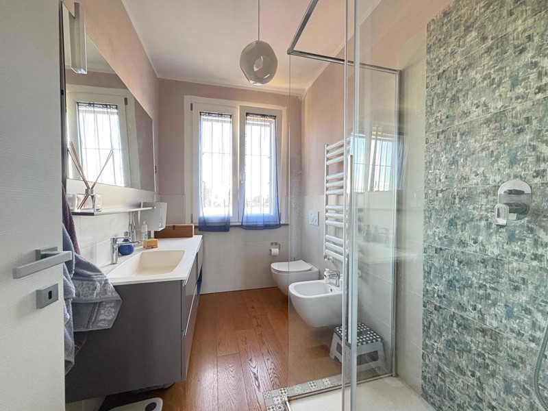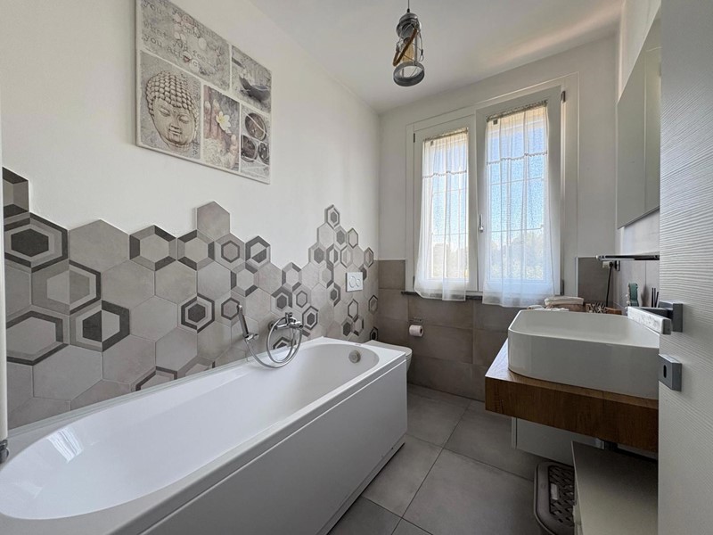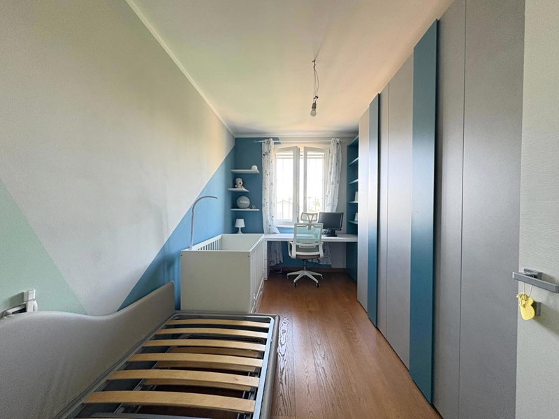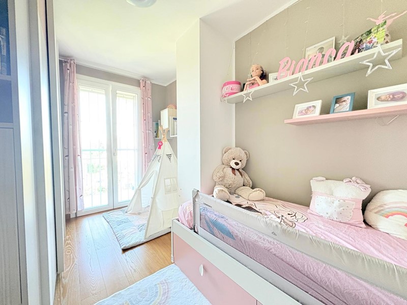 Al piano superiore troviamo la zona notte con tre ampie camere, 2 balconi e un bagno elegante.
