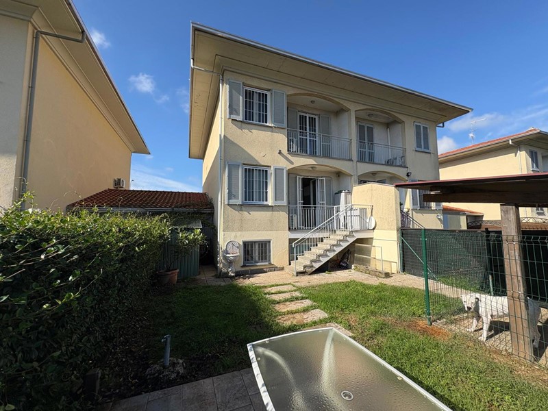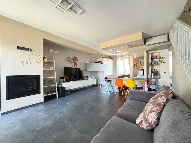 La casa ci accoglie con un ampio soggiorno doppio dotato di camino a legna ventilato, una cucina moderna con isola centrale e ambienti luminosi che si affacciano sul giardino privato, ideale per i momenti di relax all'aperto.