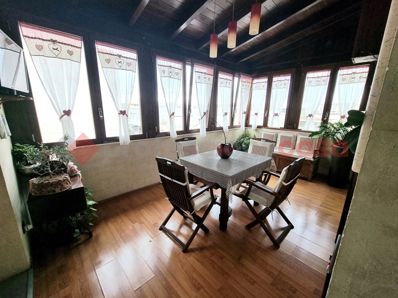 L'immobile, ben rifinito, offre un ambiente accogliente e funzionale, con una distribuzione ottimale degli spazi. L'appartamento è composto da ingresso in ampio disimpegno, due spaziose camere da letto, bagno con doccia moderno e funzionale, spazioso salone che garantisce una zona giorno spaziosa e luminosa e un pratico cucinino già arredato e completo di elettrodomestici. Un ulteriore punto di forza dell'immobile è la serra solare, che crea un'atmosfera accogliente e piacevole, perfetta per trascorrere piacevoli momenti di relax.