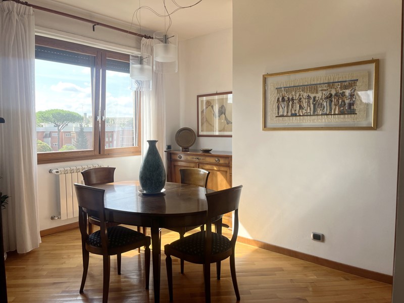 Via Michelangelo Tilli, 61 - zona Talenti/Montesacro - in un contesto residenziale, tranquillo e riservato, ma a poca distanza da tutti i principali servizi proponiamo in vendita un appartamento di 140 mq posto al quarto piano di una palazzina di piani 8 di recente ristrutturazione con interventi Ecobonus. L'immobile, molto luminoso grazie alla sua esposizione a sud - ovest ed il suo affaccio nel verde, è così composto: ingresso, salone doppio con zona pranzo e accesso ad un terrazzino abitabile, cucina abitabile con accesso ad un secondo balcone, corridoio con armadio a muro e soppalco, tre camere da letto di cui una con accesso ad un terzo balcone e due bagni finestrati. Nel suo complesso l'appartamento si presenta in ottime condizione manutentive interne e con le seguenti dotazioni: parquet nella zona giorno, tende da sole sui balconi, infissi in legno doppio vetro, riscaldamento centralizzato con predisposizione per l'autonomo e porta blindata. Completa la proprietà una comoda cantina finestrata e un posto auto coperto direttamente sotto lo stabile.