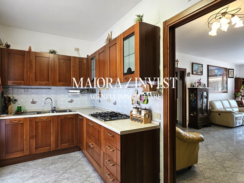 Grottammare - In comoda zona residenziale a pochi metri da tutti i servizi e a circa 700 metri dalla spiaggia, appartamento di ampia metratura posto al piano primo di piccolo caseggiato costruito alla fine degli anni 90 e privo di amministratore. L'immobile di circa 125 mq è composto da ingresso su ampio e luminoso soggiorno con caminetto, una cucina abitabile, disimpegno, tre camere di cui due matrimoniali e una singola comoda, due bagni finestrati di cui uno fornito di doccia e l'altro fornito di doccia e vasca e un ripostiglio/lavanderia posto antistante l'ingresso dell'abitazione e di circa 6 mq. L'unità abitativa gode di esposizione sud/nord ed est e dispone di ottime finiture interne, infissi in legno con doppio vetro, persiane in pvc, riscaldamento autonomo con radiatori in ghisa, videocitofono e zanzariere alle finestre. Completano la proprietà una corte terrazzata di circa 60 con possibilità di posteggiare due auto, un comodo garage provvisto di serranda elettrica di circa 33 mq oltre ripostiglio sottoscala di mq 8 e spazio antistante di circa 100 mq sfruttabile come posti auto. Possibilità di acquisto di un ulteriore fondaco di mq 74 con importo da computare a parte. Ottima soluzione immobiliare per ampio nucleo familiare e per chi cerca spazi comodi nelle immediate vicinanze della spiaggia e dei servizi. Codice di riferimento 1471. Agenzia Immobiliare Maiora/Invest.