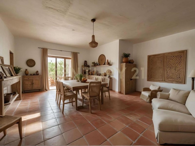 Un secondo corridoio introduce al reparto notte, composto da tre camere da letto e un bagno completo. Un ampio salone, con angolo cottura, è accessibile sia dall'ingresso principale che dal terrazzo.