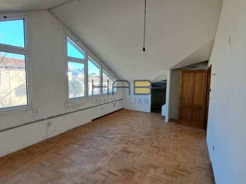 Trattasi di villa anni '70, completamente ristrutturata e ampliata tra il 1990 e il 2000, attualmente composta da due abitazioni unite ma dotate di due ingressi separati ed un appartamentino al piano terra per un totale di circa 600 mq commerciali. Completano la proprietà due garage, svariati locali accessori e la possibilità di realizzo di molteplici posti auto esterni. L'abitazione si trova in un contesto residenziale, comodo al centro città che è raggiungibile a piedi, in una posizione invidiabile perché al termine di una strada chiusa pur restando al centro del quartiere. L'immobile sorge su un grande lotto di 1200 mq, di forma regolare e con il maggior sviluppo verso l'interno. Al piano terra sono presenti due grandi garage, un appartamento completo molto luminoso, lavanderia, e centrale termica. Al piano primo abbiamo un doppio accesso, grande abitazione con tre camere, cabina armadio su misura, cucina e soggiorno da 40 mq con camino in marmo rosso veronese e presenza di parquet a mosaico intarsiato. Dalla zona giorno del piano primo abbiamo accesso diretto ad un terrazzo di circa 35 mq esposto a sud dal quale è possibile accedere al grande giardino piantumato. Dal secondo accesso del piano primo si raggiunge tramite una scala in olmo massello il piano superiore. Si tratta di uno splendido appartamento mansardato, anch'esso completamente pavimentato a parquet, con grande open space estremamente luminoso grazie alle grandi vetrate che danno acesso ad un terrazzo a vasca di 18mq. Nella zona notte due camere matrimoniali, terza camera/studio e due servizi. L'immobile è dotato di vano tecnico adatto alla realizzazione di un ascensore interno che unisce tutti e tre i piani. Abitazioni già in classe C, pronte da abitare con pochi interventi.