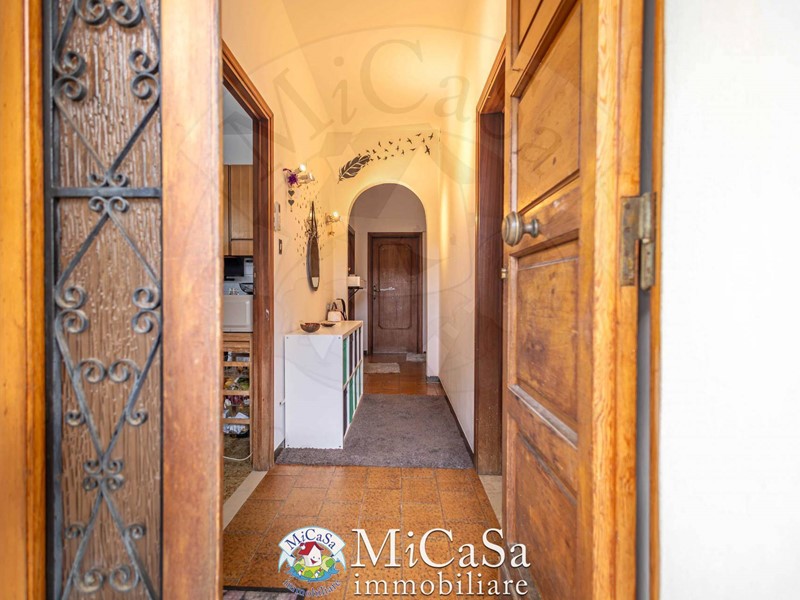 Laccesso alla proprietà avviene da un ampio cancello carrabile automatico: un grazioso vialetto conduce alla scala esterna che porta al piano primo. L'abitazione si apre su un ingresso tradizionale, proseguendo con una sala luminosa, una cucina abitabile con accesso a balcone, due spaziose camere matrimoniali, uno studio e un bagno finestrato con vasca.