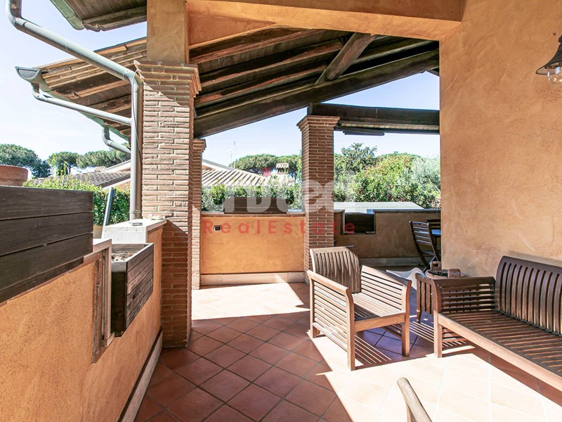La villa è molto luminosa, in quanto gode di una tripla esposizione, si trova in ottimo stato, con rifiniture in legno stile casale, infissi in pvc con doppi vetri, inferriate, zanzariere, impianto di allarme e di climatizzazione.