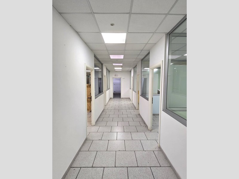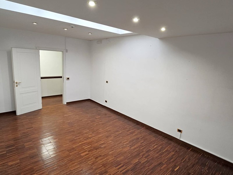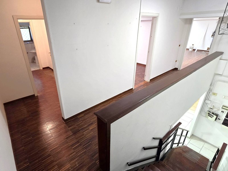 Il piano soppalco (con altezza 3,30 m) ospita uffici rifiniti con pavimentazione in parquet, controsoffitti con faretti, scala interna di collegamento al piano in legno e metallo, condizionamento.