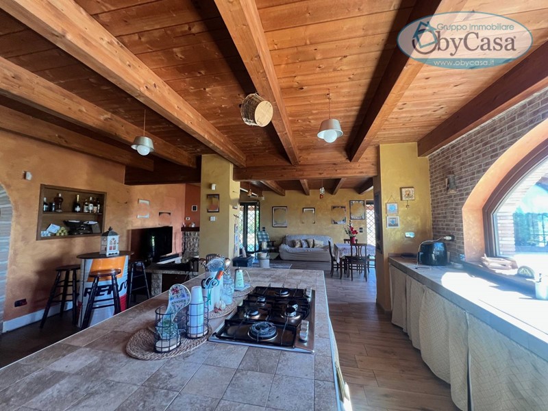 - **Zona Giorno:** Ampio salone con doppio camino e cucina open space di circa 100 mq, ideale per convivialità e relax. Completa la zona giorno un terrazzo abitabile, perfetto per pranzi allaperto.