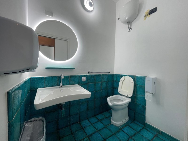 Il locale è in perfette condizioni e dotato di cucina attrezzata, climatizzazione completa, aspirazione professionale per evitare la diffusione di odori in sala, filodiffusione regolarmente registrata alla SIAE, bagni per clienti (realizzati con finiture di pregio firmate Nicolò Giuliano), oltre a spogliatoio e bagno per il personale.