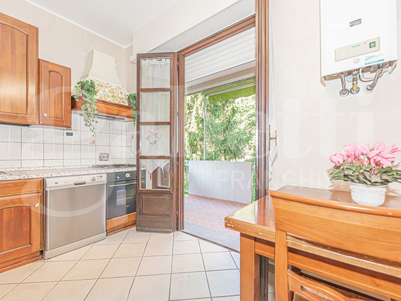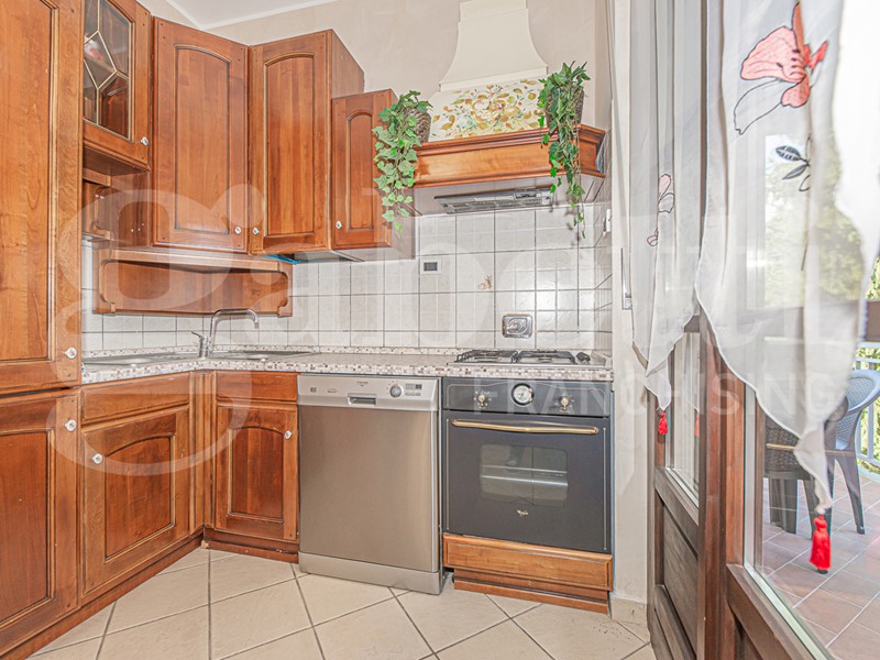 All'interno, gli spazi sono ben organizzati con un ingresso che accompagna alla cucina abitabile con accesso al balcone. dall' accogliente soggiorno si accede al  terrazzo vivibile, ideale per godersi il panorama circostante e rilassarsi all'aria aperta.  La camera da letto vanta un' ampia metratura ed arieggiata da un balcone. Il bagno con doccia  è stato completamente ristrutturato pochi mesi fa. Completa la soluzione un comodo ripostiglio.  I serramenti sono in legno con doppio vetro ed assicurano un ottimo isolamento termico e acustico, mentre la doppia esposizione regala luminosità costante.