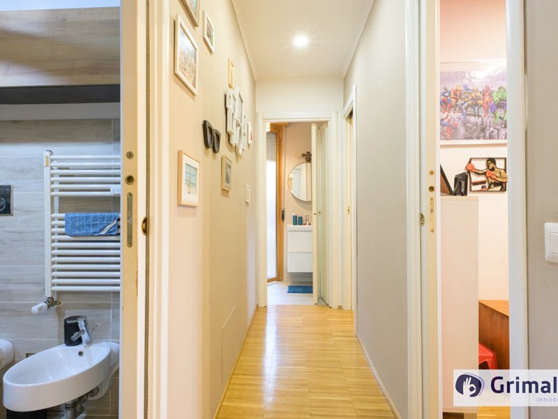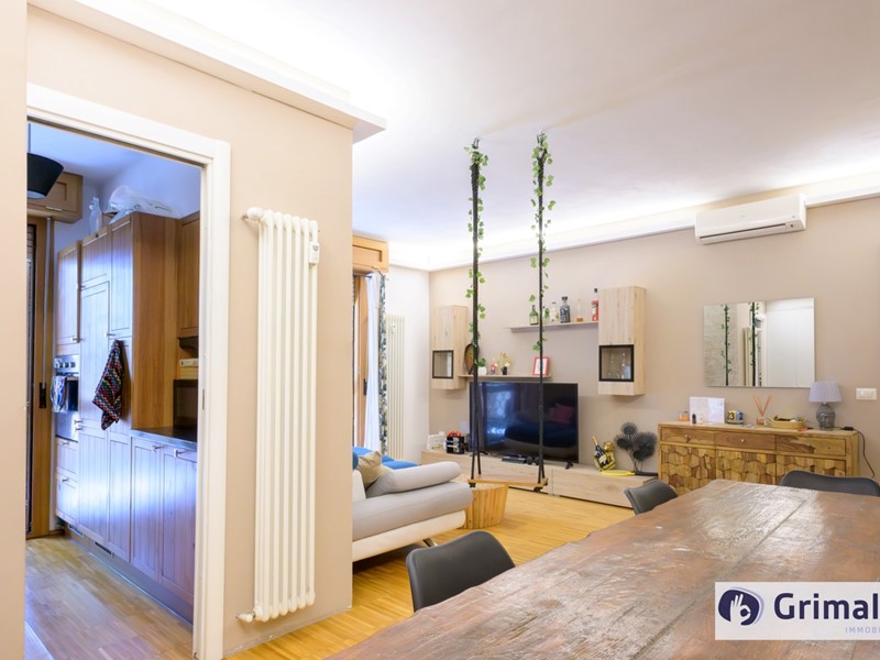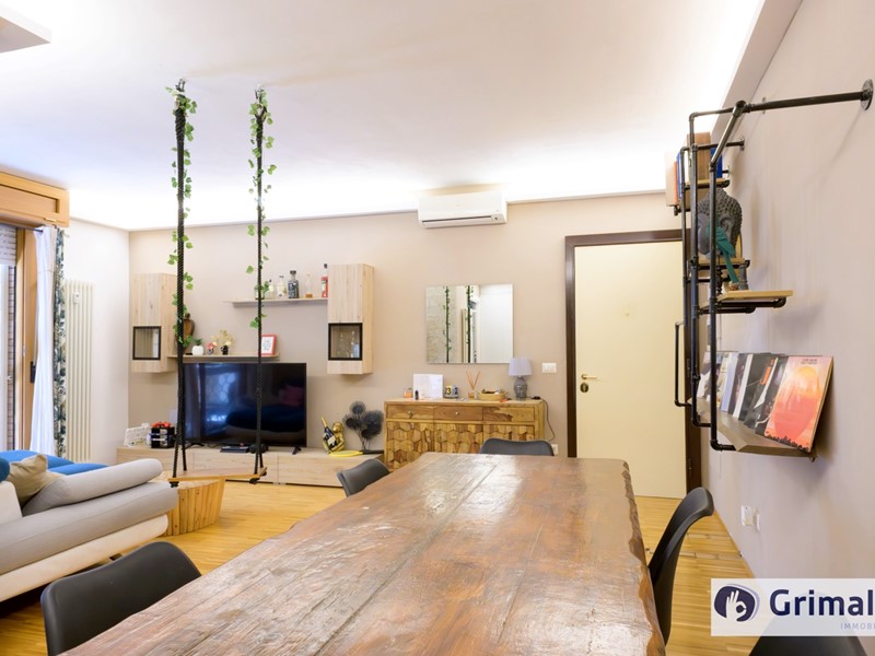 Si presenta in ottimo stato con una ideale suddivisione degli spazi ed è provvisto di teleriscaldamento centralizzato con performanti radiatori sia in ghisa e sia in alluminio, climatizzatori inverter, termoarredo nei bagni, infissi doppiovetro, portoncino blindato, controsoffitti e pavimentazioni in parquet.