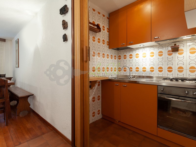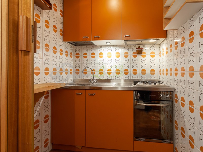 L'appartamento, posto al piano terra, in condominio, è così composto: ingresso su soggiorno con zona pranzo, accesso al giardino; angolo cottura a vista (dotato di frigo piccolo con ghiacciaia, piano cottura 4 fuochi gas).