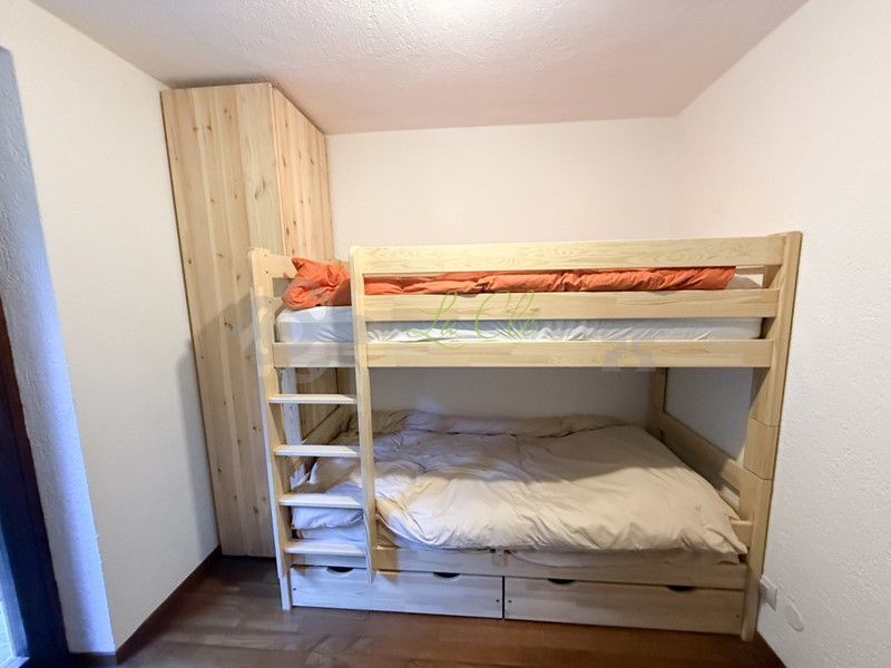 La zona notte è composta da 1 camera matrimoniale, 1 bagno finestrato con vasca, 1 camera doppia con letto a castello.