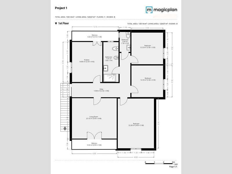 - Salone luminoso: 25 mq con porta finestra che dà accesso a un secondo balcone di 5 mq.