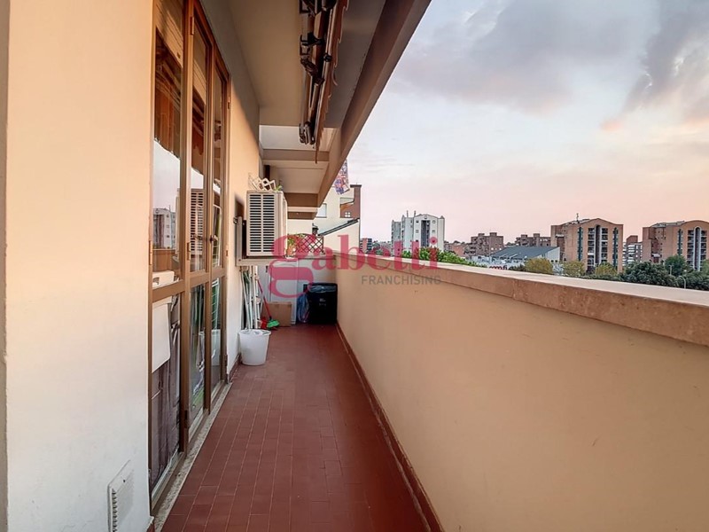 NOVITA' IN ZONA CNR - NOSTRA ESCLUSIVA - Appartamento trilocale con grande terrazza di 67mq ideale per feste all'aperto con gli amici - L'immobile, della superficie di 65mq, è posto al quarto piano con ascensore ed è articolato in ingresso in ampia zona giorno dalla quale si può accedere sia ad un balcone che alla grande terrazza abitabile, oltre che al cucinotto separato, disimpegno notte con ripostiglio, camera matrimoniale e bagno. L'immobile oggetto di una recente ristrutturazione ad inizio 2017 è stato valorizzato riorganizzando gli originali spazi del trilocale ed ottenendo un unico ampio soggiorno dalla fusione di sala e cameretta in base alla personalizzazione voluta dall'attuale proprietario.