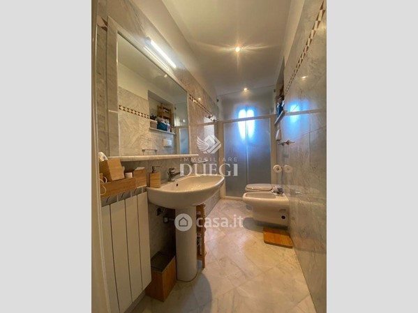 Un pratico disimpegno, conduce nella zona notte dove troviamo ampia camera matrimoniale e un bagno finestrato, interamente rivestito in marmo con doccia walk in.