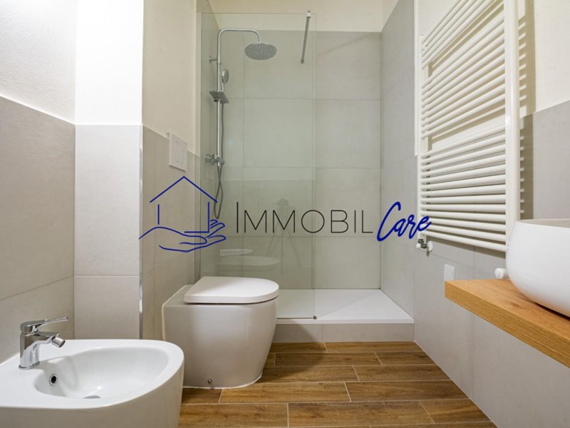 I bagni sono due, uno con doccia e l'altro di servizio, non finestrati.
