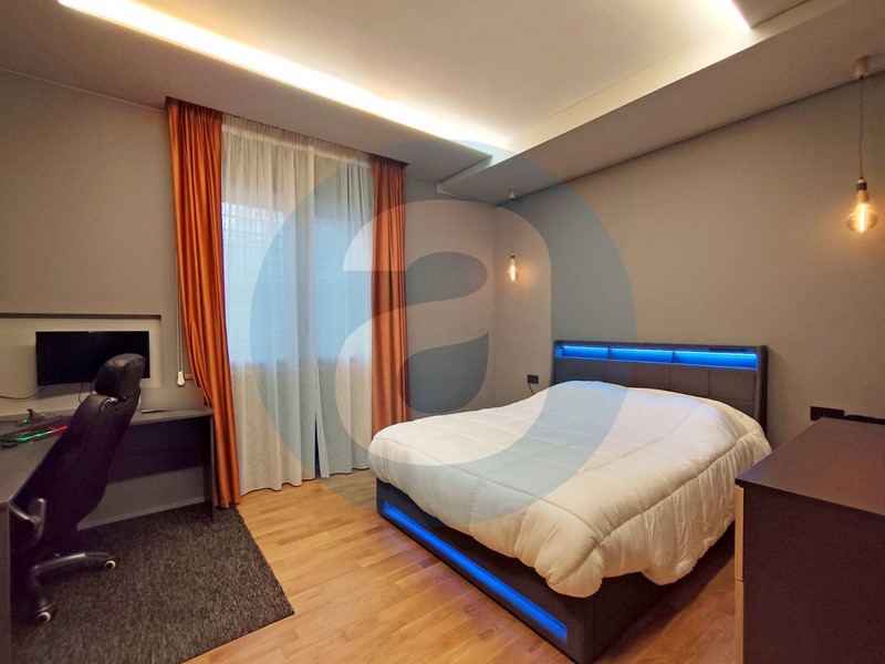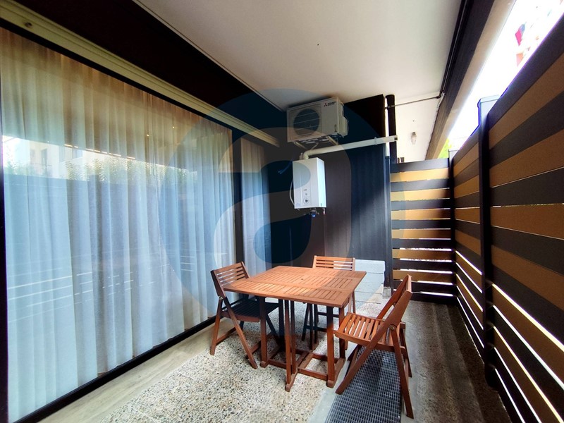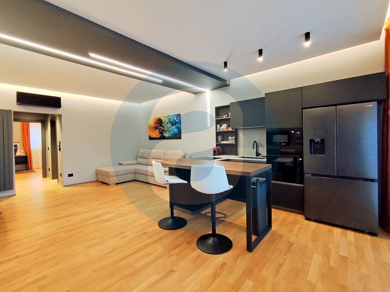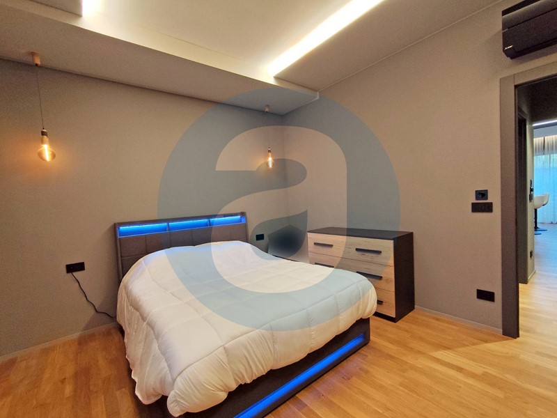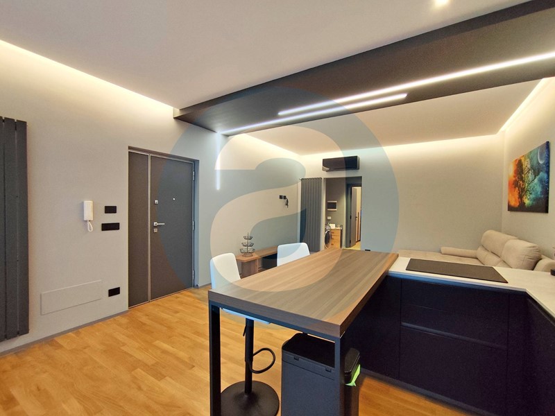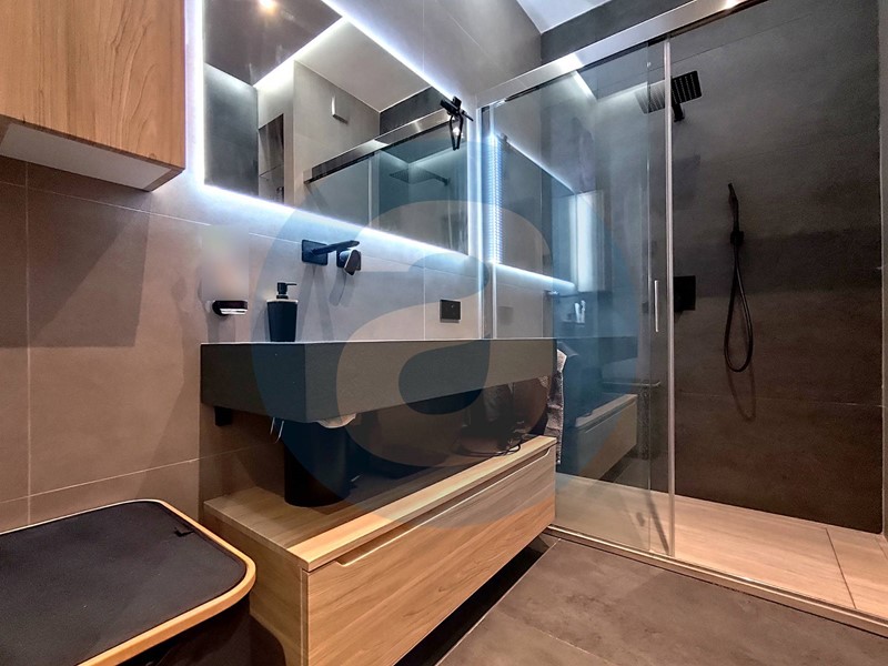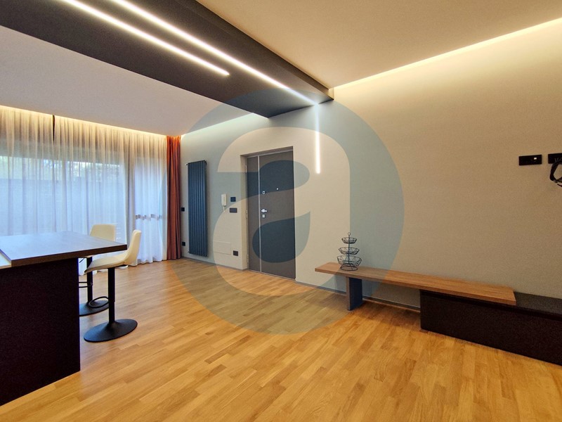 FINITURE: Pavimentazione in parquet rovere con patina antigraffio. Infissi in alluminio con vetrocamera. Zanzariere. Tapparelle in pvc. Porta di ingresso blindata. Climatizzatori Mitsubishi in zona giorno e in camera da letto. Bagno con aerazione forzata con sensore di umidità e sistema luci con cambio di colore. Predisposizione per impianto di allarme. Riscaldamento autonomo. APE D.