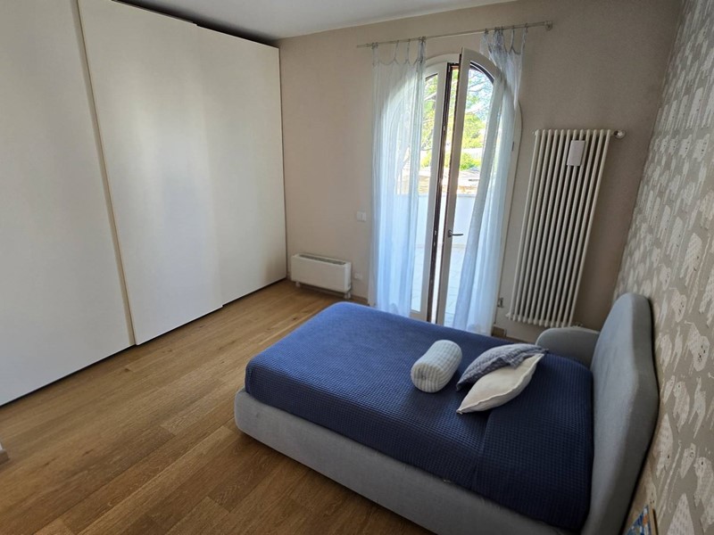 Al primo piano si trova la zona notte, composta da tre spaziose camere da letto, di cui una padronale con cabina armadio e bagno en suite, un comodo disimpegno con arredi fissi, un ulteriore bagno e piacevoli terrazzini. Il lastrico solare ospita un ampio vano lavanderia completamente attrezzato oltre alla zona impianti.